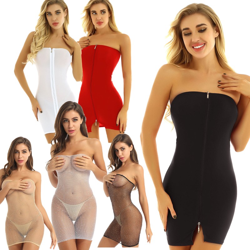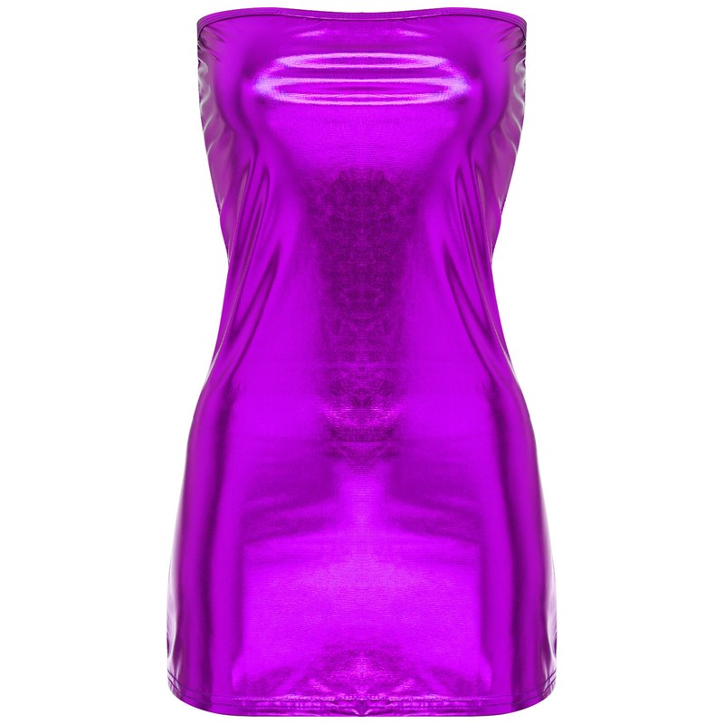 US Women Sexy Shiny Metallic Strapless Tube Top Mini Bodycon Glitter Club Dress