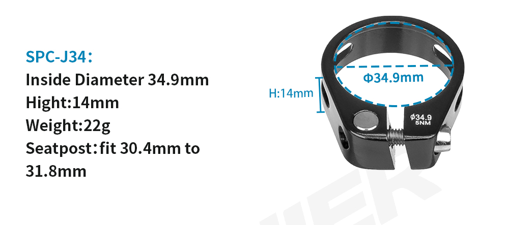 34.9mm: Inside Diameter 34.9mm,Hight 13mm,fit for ≤33.9mm Seatpost;