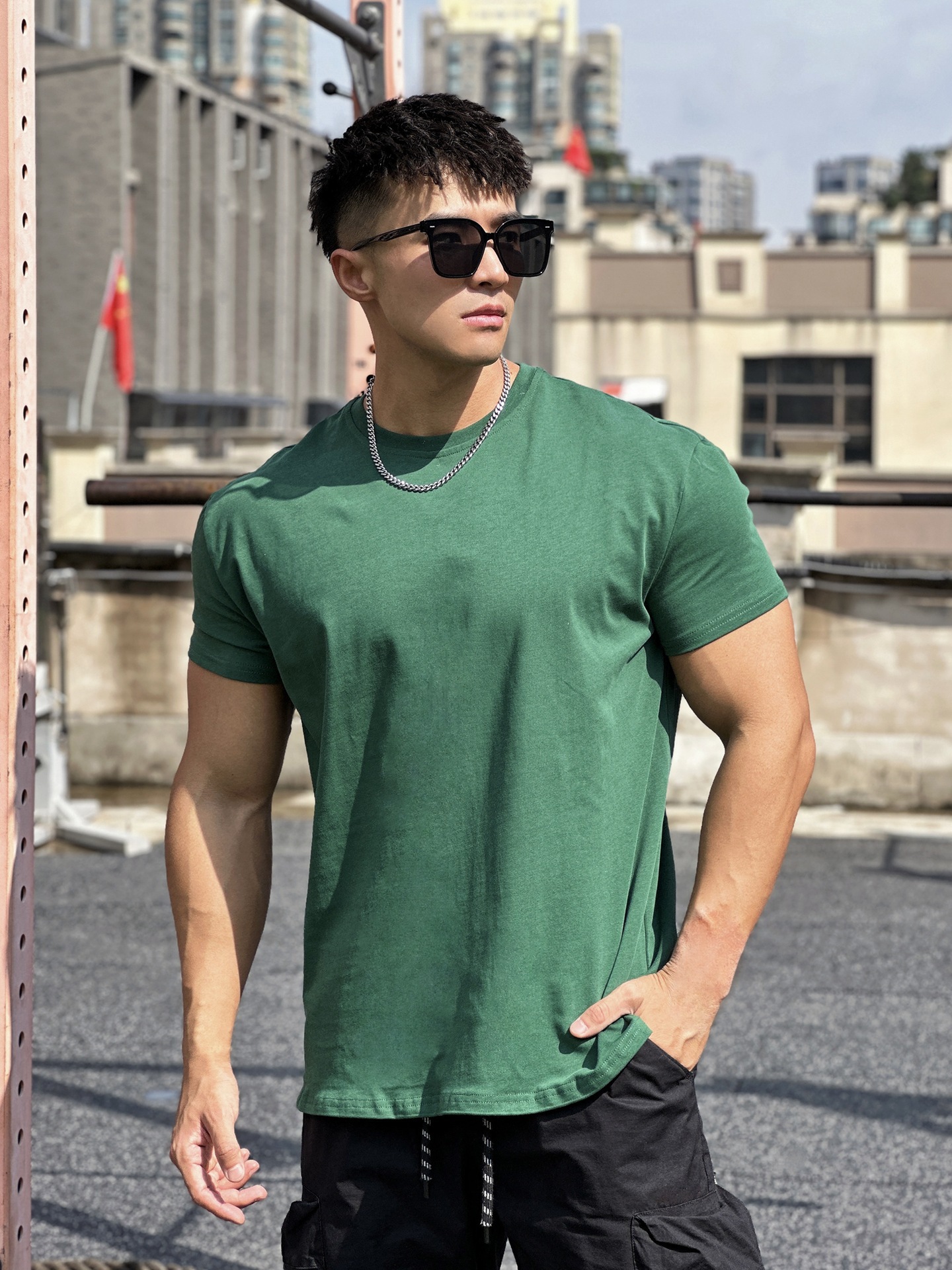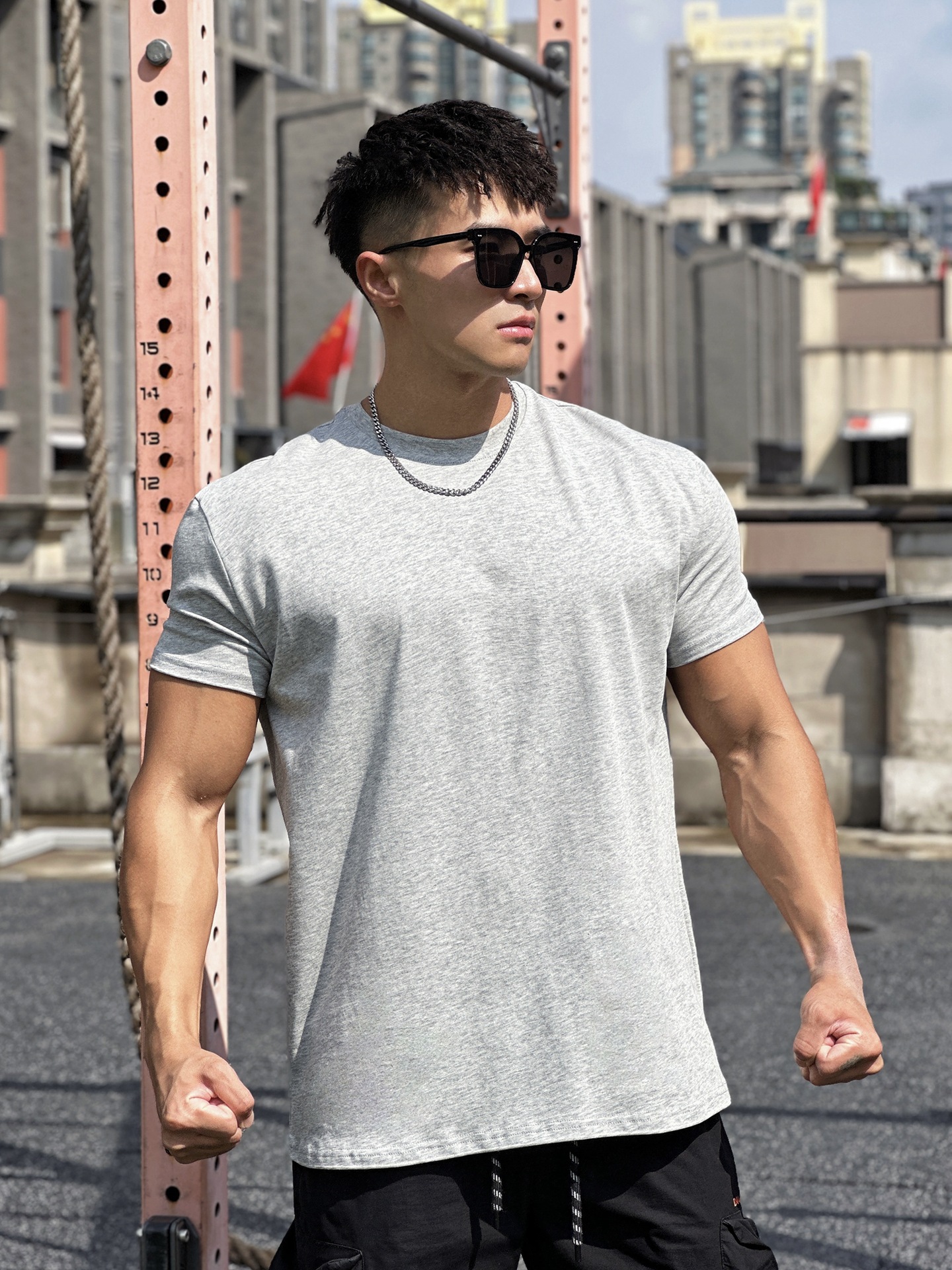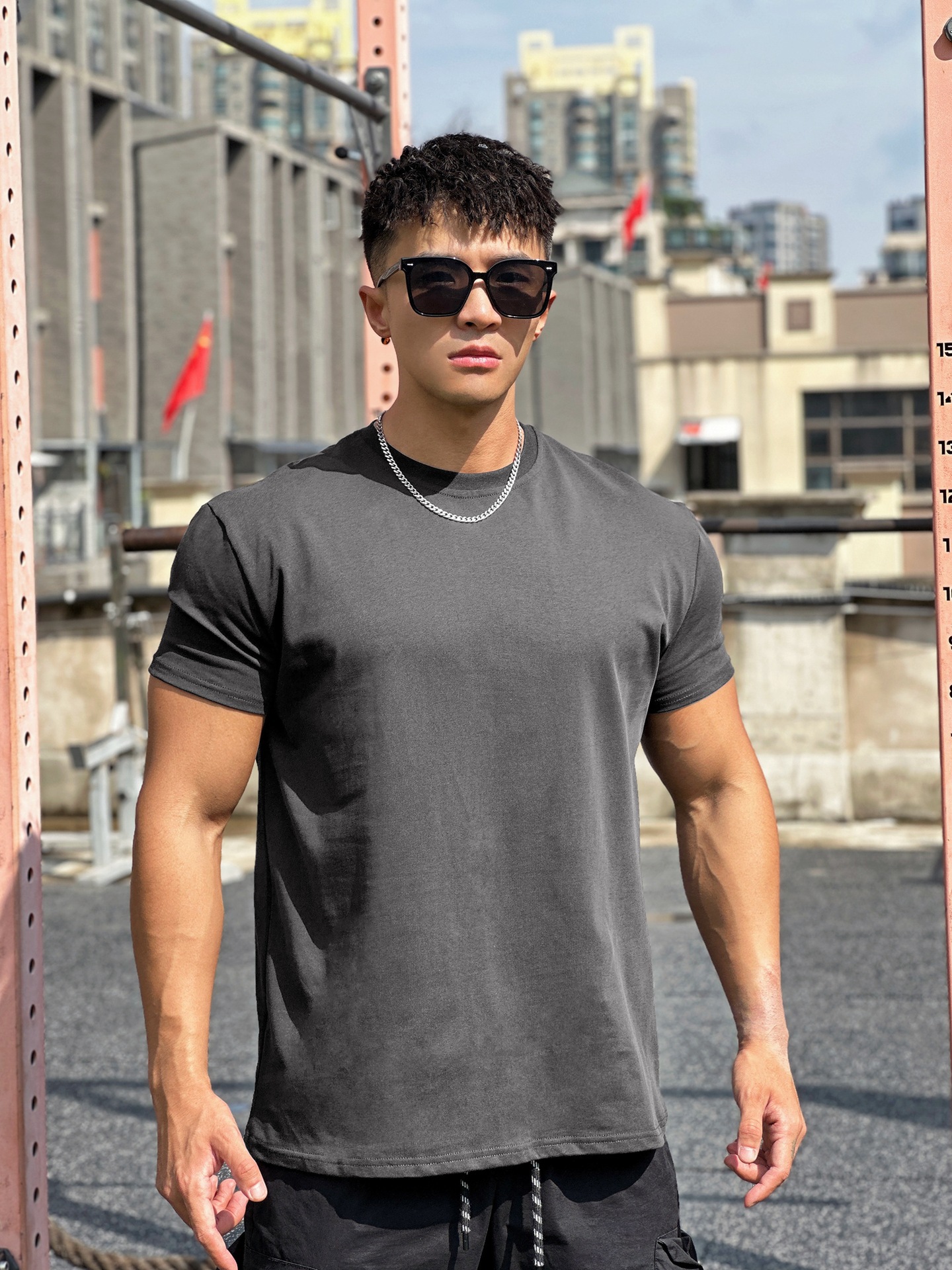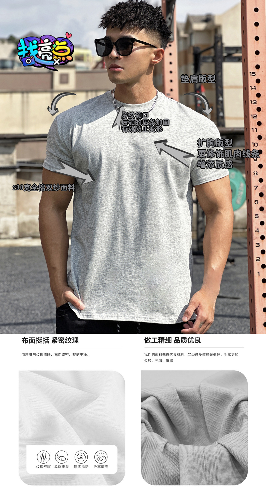 运动短袖男T恤垫肩收袖口健身跑步训练肌肉撸铁狗兄弟美式纯色潮