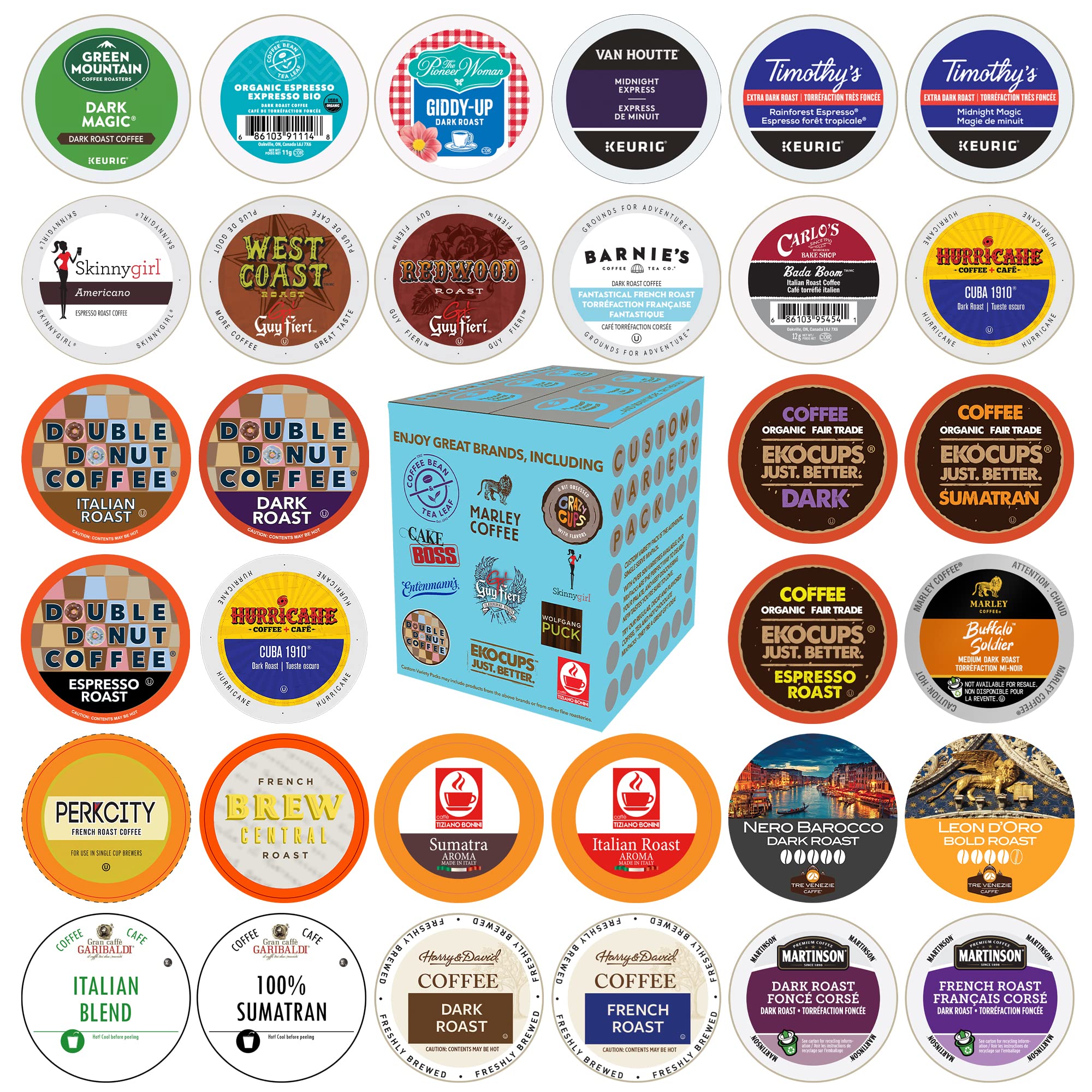 Custom Variety Pack Coffee Pod Variety Pack, Dark Roast and Bold Flavors, Single Serve Cups for Keurig K-Cup Machines - Robust Assortment with No Duplicates, 30 Count - Great Coffee Gift