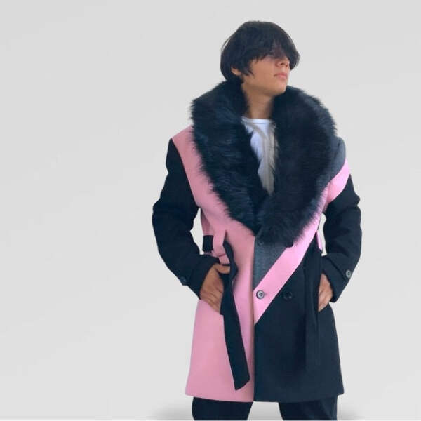 This luxurious Men's Makobi Double Breast coat is crafted from faux fur. With a classic silhouette and the perfect blend of pink, grey, and black, it's perfect for any casual fashion look. It offers a soft and comfortable feel for a warm and fashionable look.