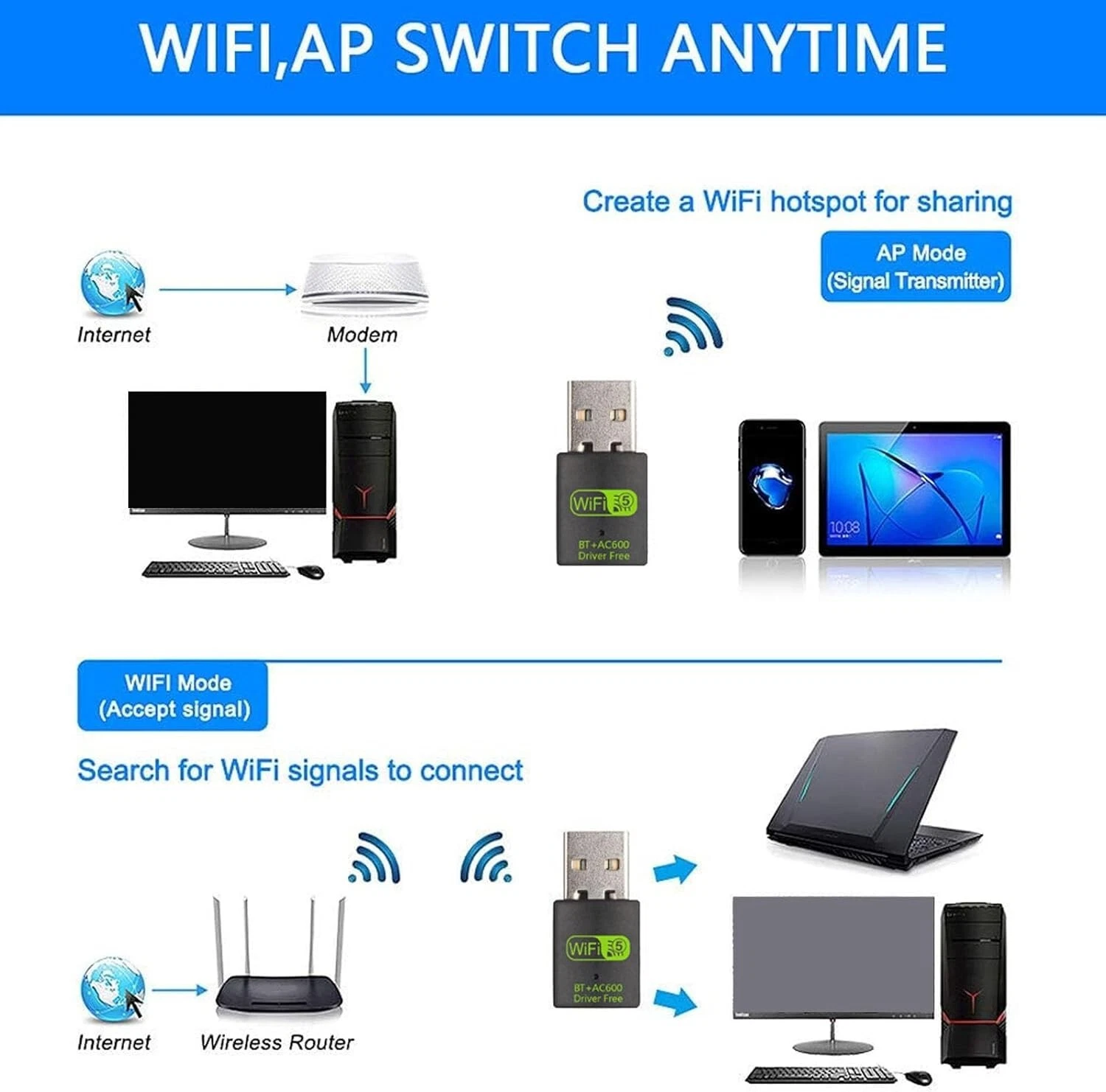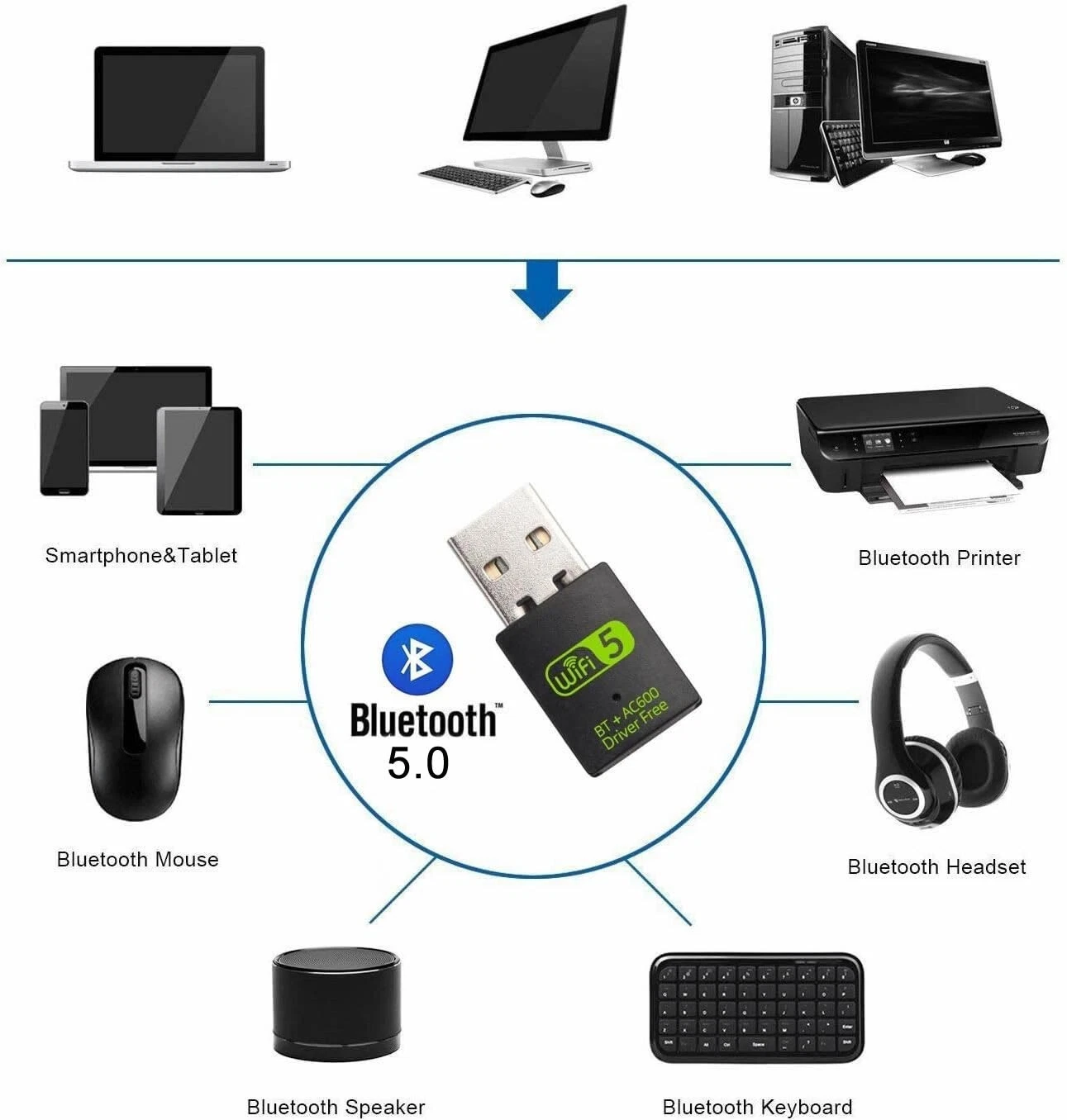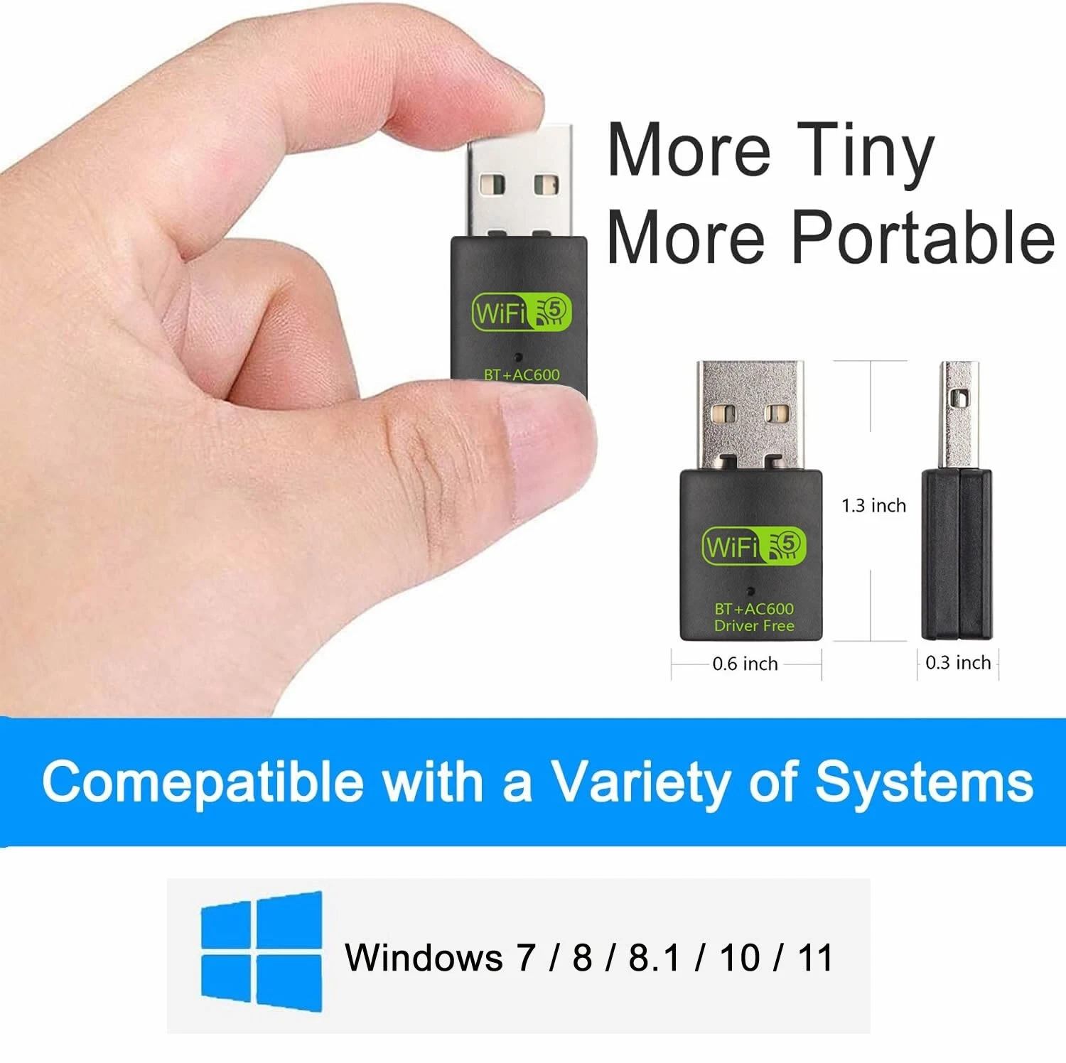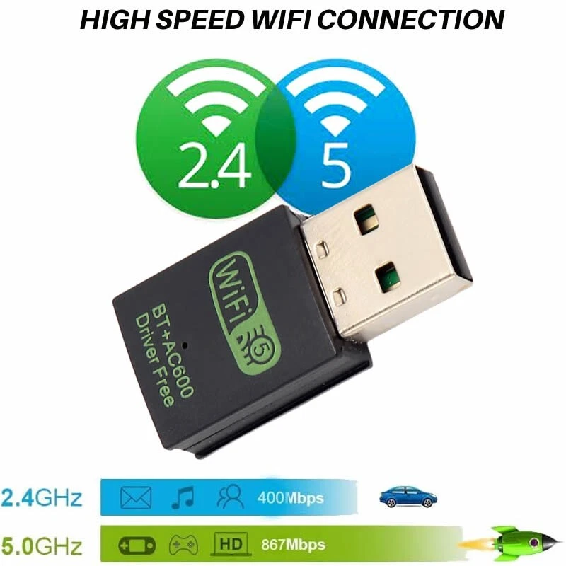 Dual Band WIFI + Bluetooth Adapter USB WIreless Mini Dongle 600Mbps 2.4Ghz 5Ghz