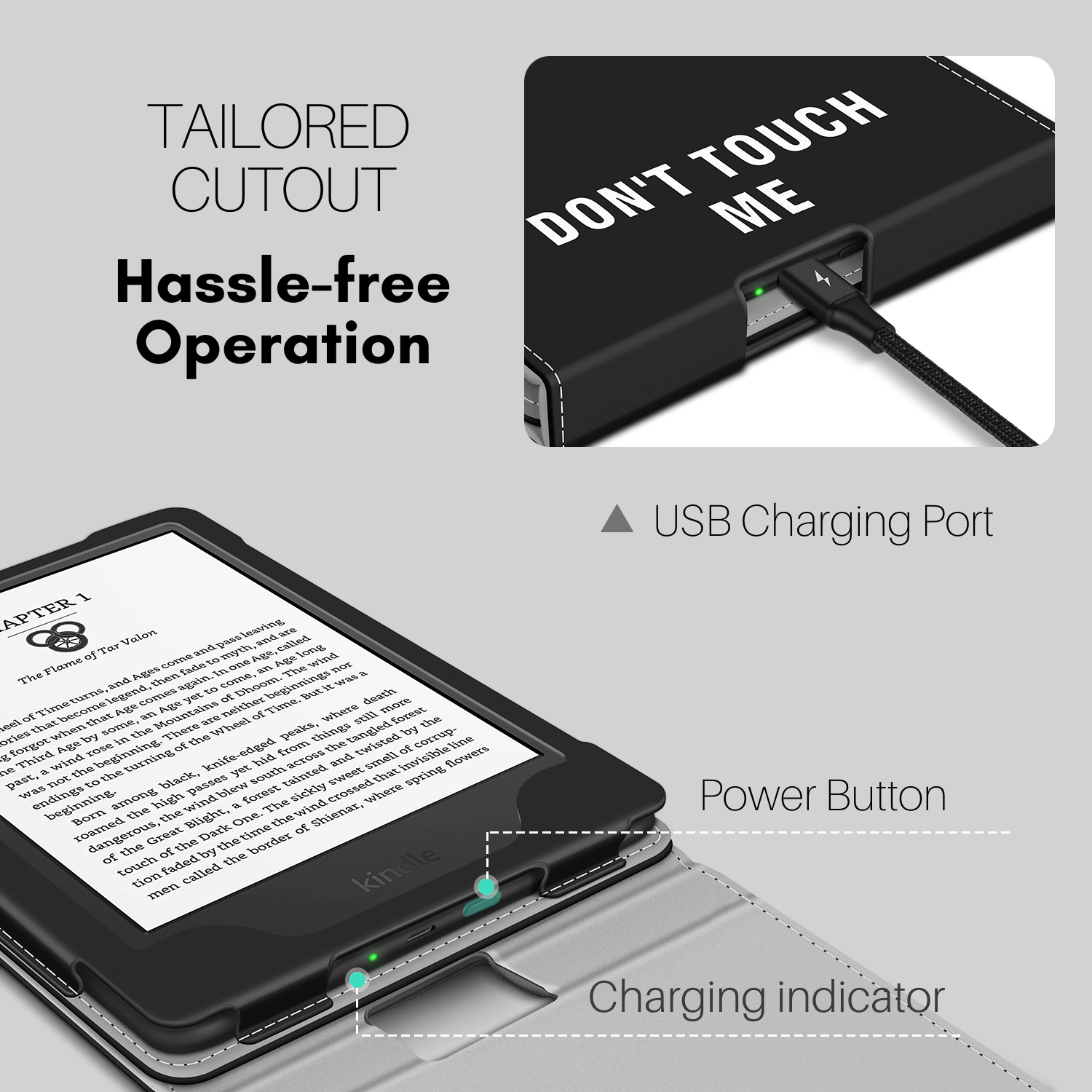 Slim, form-fitting cover to perfectly fit your all new Kindle (11th Generation) and provide full front and back protection. The cover is easy to securely attach and remove, and folds back for easy one-handed reading. It automatically puts your Kindle to sleep when closed and wakes upon opening, making it easy to jump back into your book. Made of durable synthetic leather, this case is designed to be lightweight and protective, protect your device without adding unnecessary bulk, so you can hold it for hours of reading with minimal effort. With the nylon woven interior, the cover protects your Kindle and keeps the screen clean without adding bulk, making it perfect for taking your Kindle wherever you go.Feature: