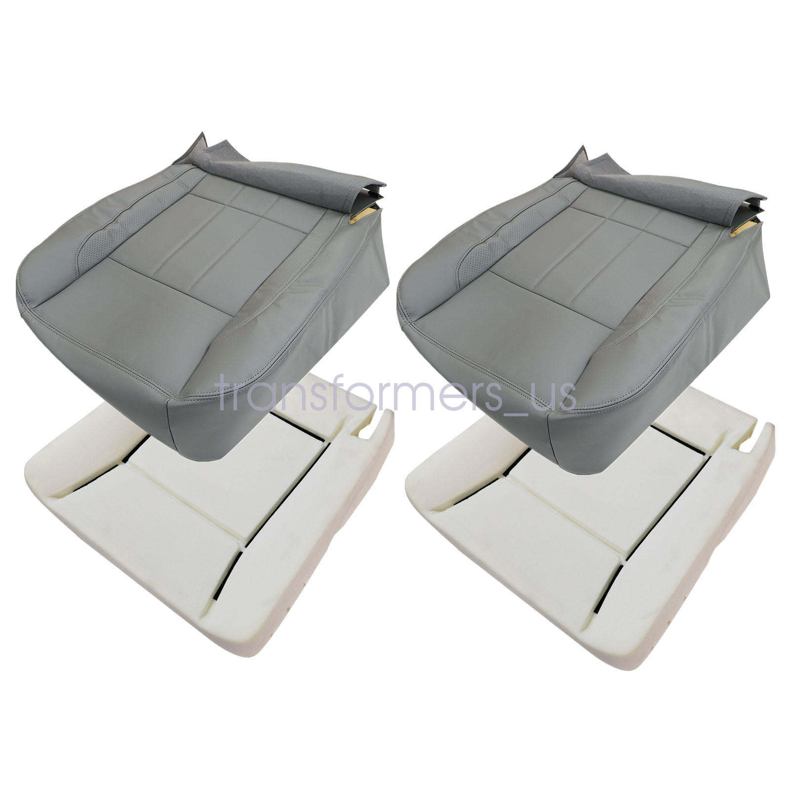 Driver & Passenger Bottom Leather Seat Cover Gray D5 & Foam Cushion Fits 2006-2009 Dodge Ram 1500 2500 3500