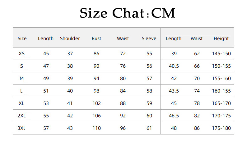 Size:2XL,height:170-175cm,length:45cm,shoulder:42cm,bust:106cm,waist:92cm,sleeve:60cm