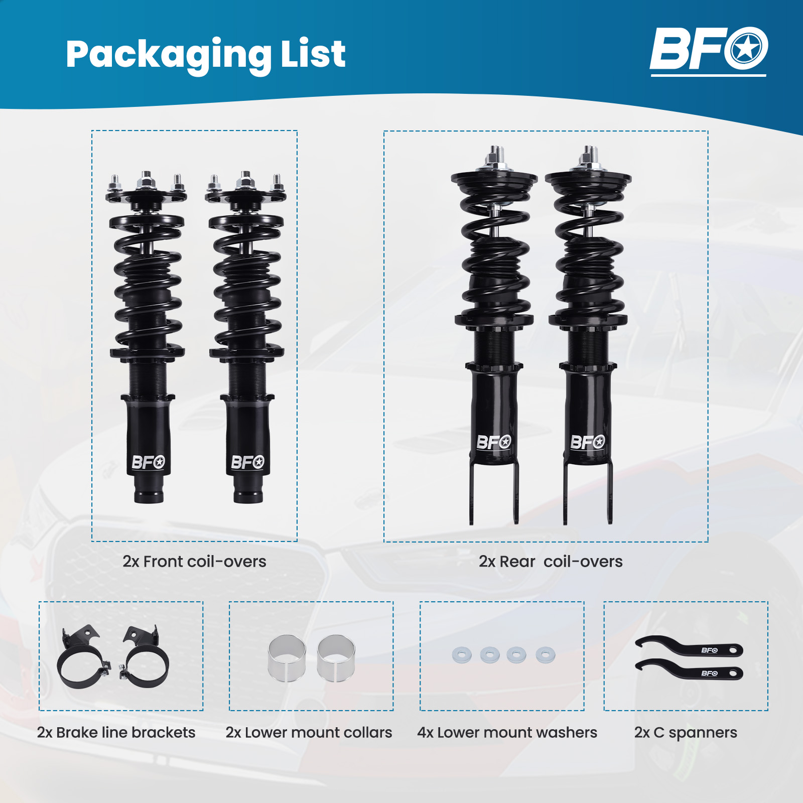 - Height adjustable: Yes, lowering 25-75mm depending on the vehicle models