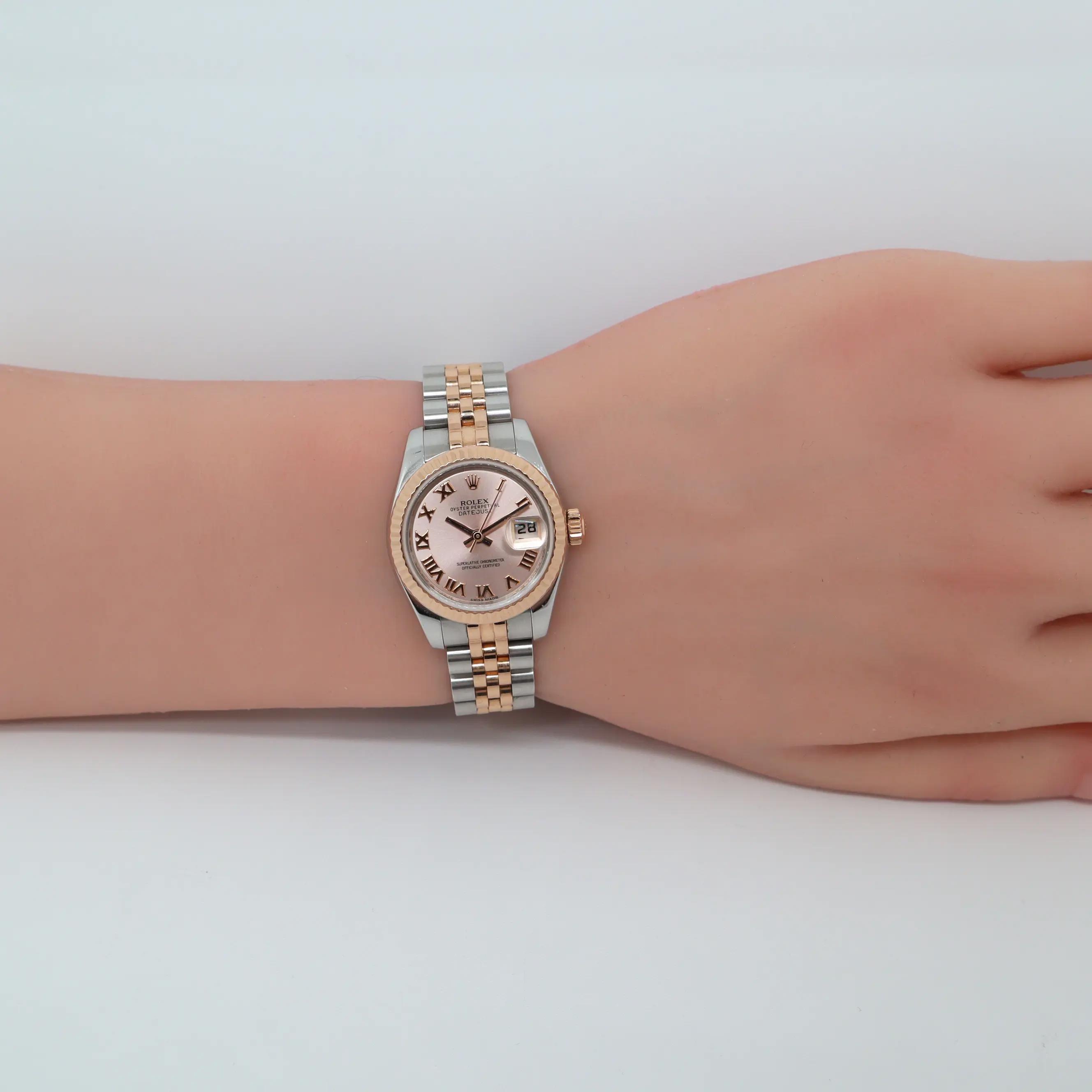 Scrambled Rolex 179171 Datejust 28 Sundust Roman Dial Steel 18K Rose Gold Watch