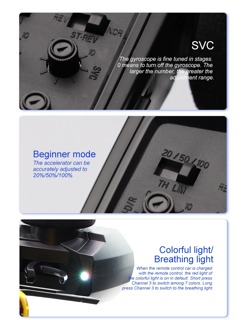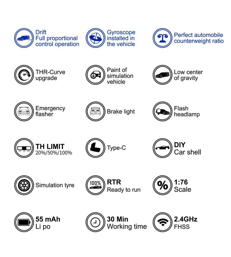 Specifications: Item Brand: Turbo Racing Model Name:C64 Drift RC car Frequency Bran:2.4GHz 1:76 RC car size:60*25.6*17.3mm Product Net Weight:450g Certificate:CE/FCC/ROHS/CCC Control Distance:30M Playing time: 30min Charging battery: 3.7V 55mAh LiPo Trim function: Yes REV: Steering reverse Color: Blue, Green What remote conrol can fit this car:Turbo Racing VT system transmitter
