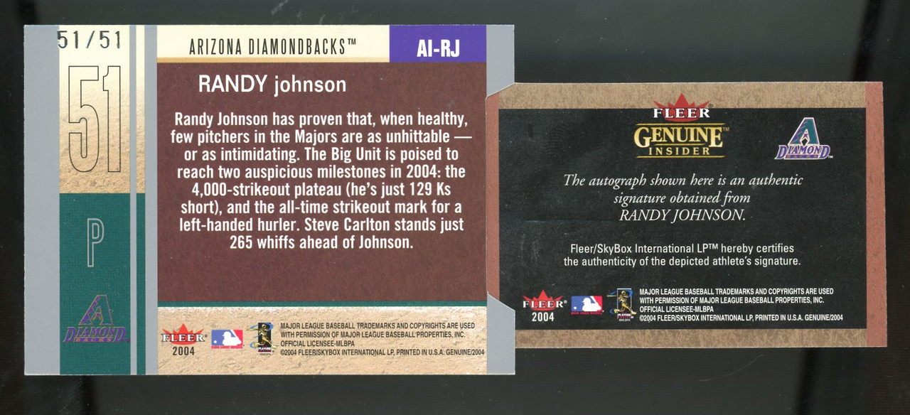 2004 Fleer Genuine Insider Randy Johnson Auto 51/51 #AI-RJ