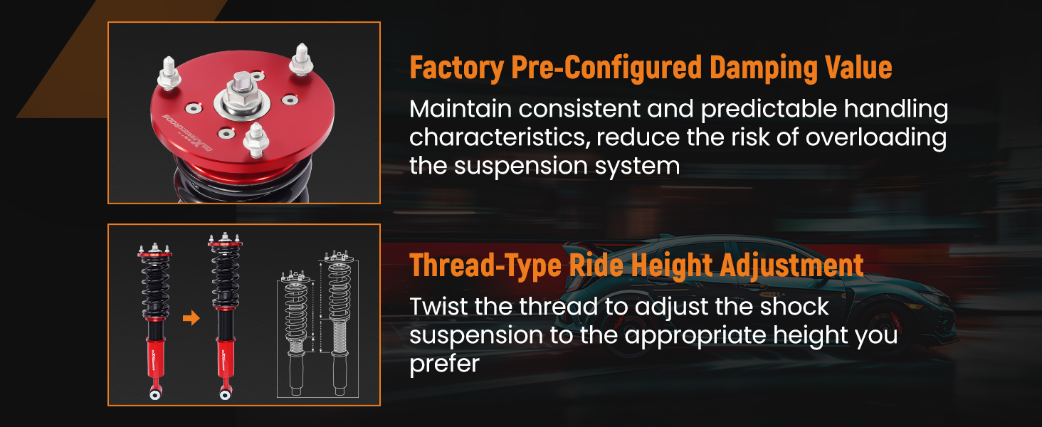 Allows ride height adjustment without affecting suspension stroke, maintaining comfort while customizing height.