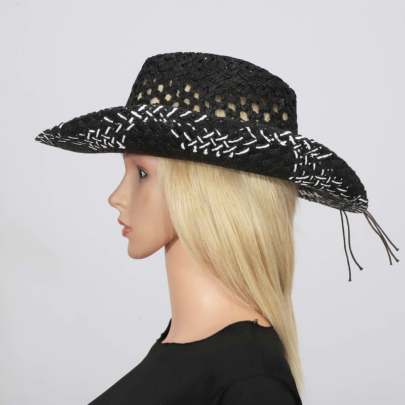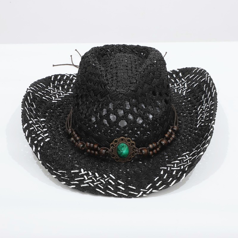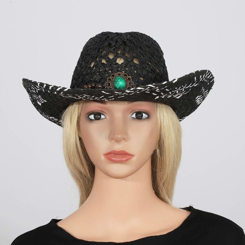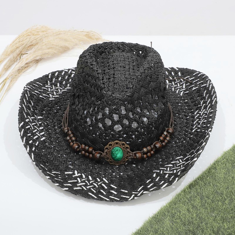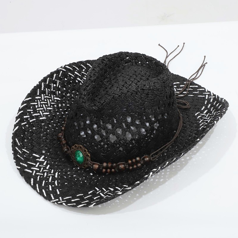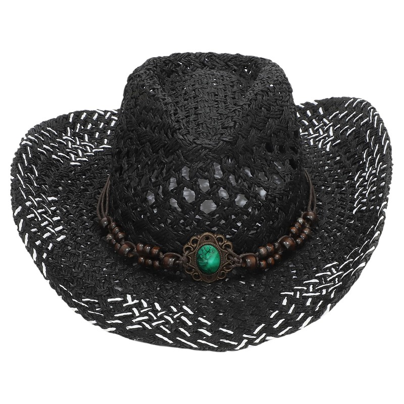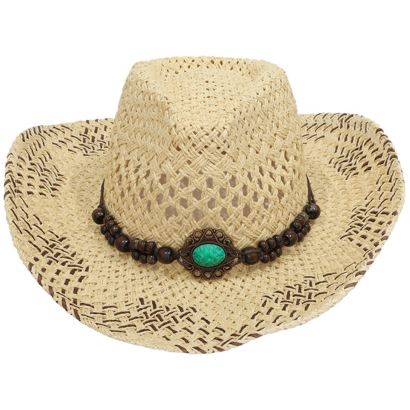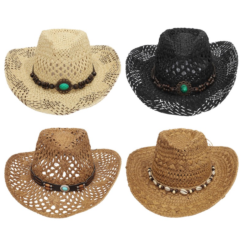 Belt on the top decorates with chic decoration to create ethnic style and pastoral. Western cowboy hat styling design brings chic and vintage look.