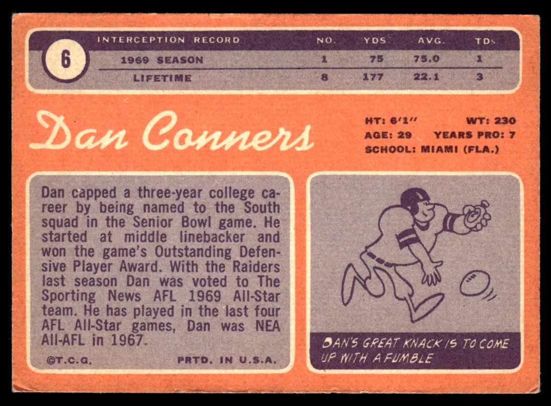 | 1970 Topps Dan Conners RC Oakland Raiders #6 | ||||||||||||||||||
