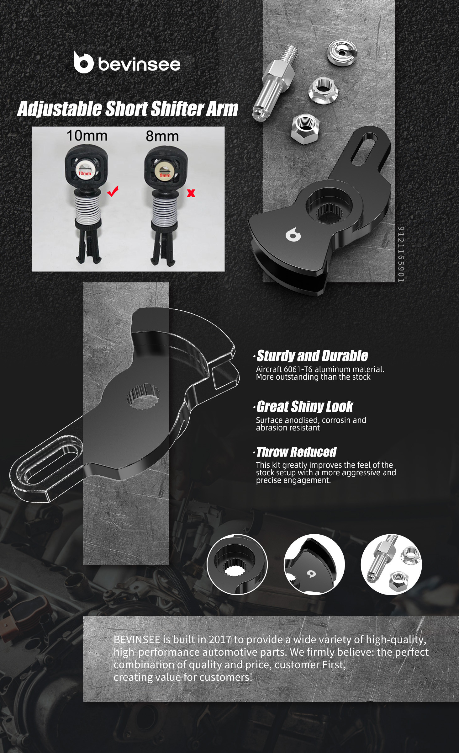 【Hochwertiges Material】Der kurze Schalthebelarm ist aus 6061er Flugzeugaluminium CNC-gefräst und korrosionsbeständig.