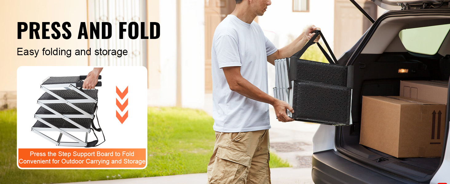 Lightweight and portable, the portable dog step can be easily folded and stored away.