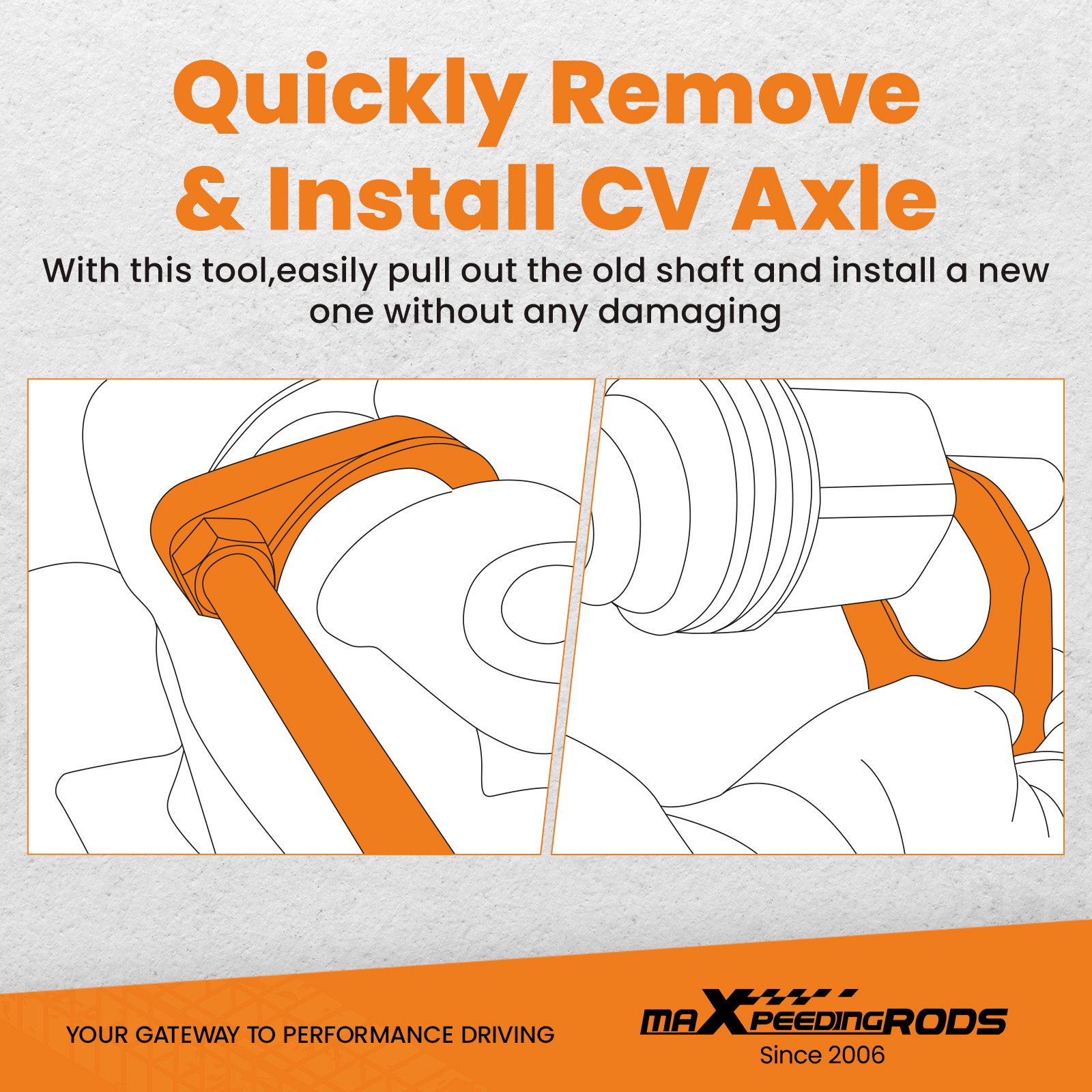 Easily remove and install stubborn CV axles with a simplified process that protects the transmission, brakes, and suspension.