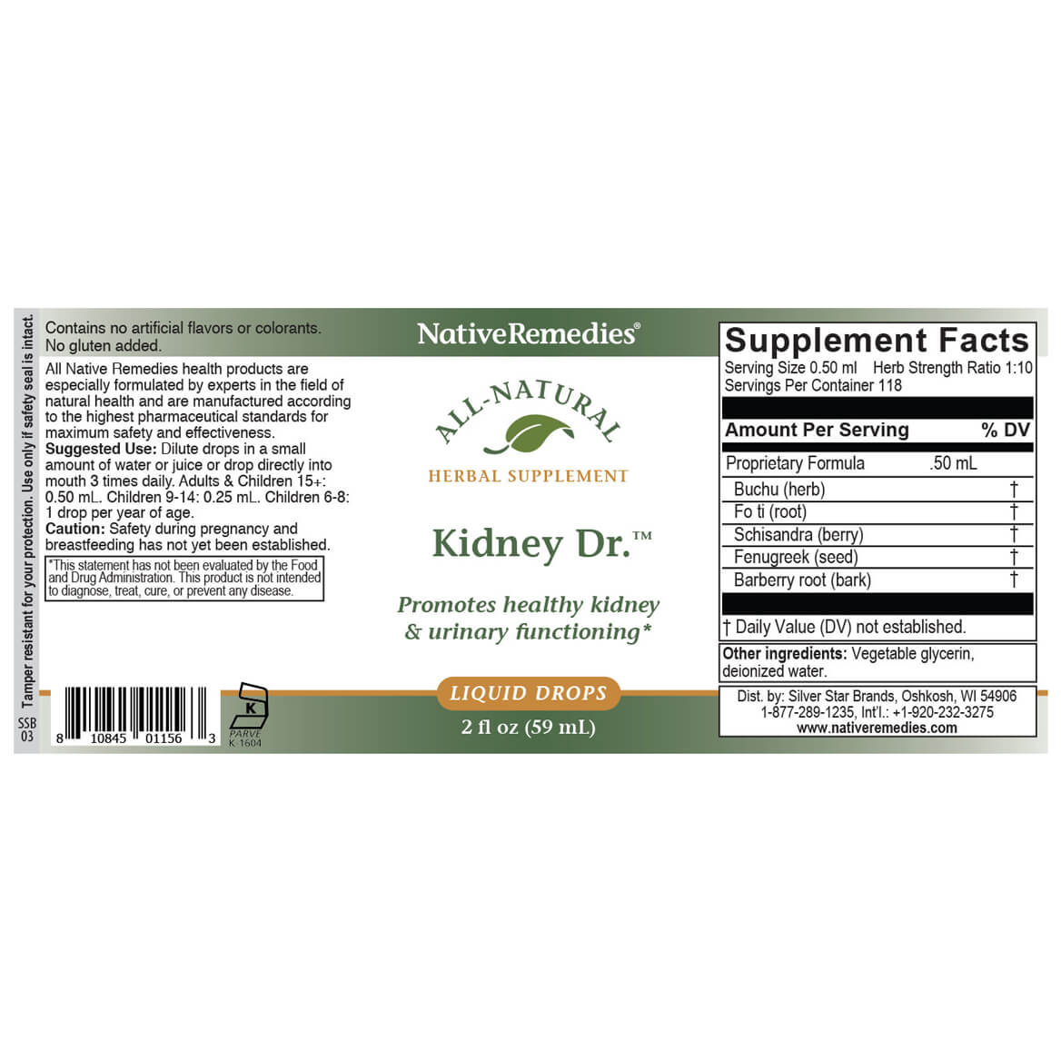 Native Remedies Kidney Dr. is a 100% natural herbal remedy containing herbs known to support kidney health. In combination with a healthy lifestyle and diet which excludes excess sugar, stimulants, artificial preservatives, colorants and excessive alcohol intake, Kidney Dr. can make all the difference, without compromising health or risking serious side effects. The formula remains true to the whole spectrum method of herbal extraction ensuring the bio-availability and balance of all the ingredients contained in the remedy. This method of manufacture also significantly reduces the likelihood of side effects and maintains all ingredients in perfect balance - exactly as nature intended! All Native Remedies products are manufactured in FDA-registered, cGMP-compliant facilities under the super
