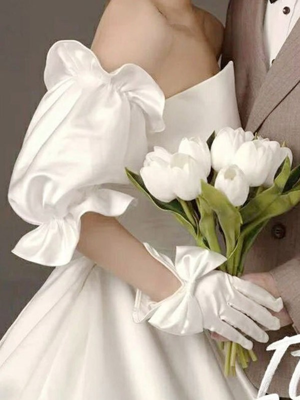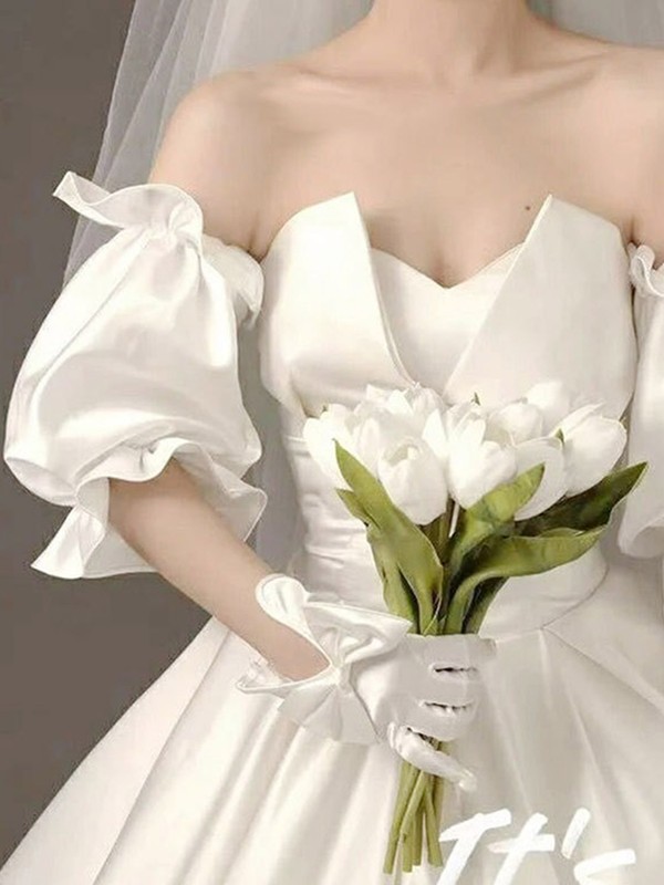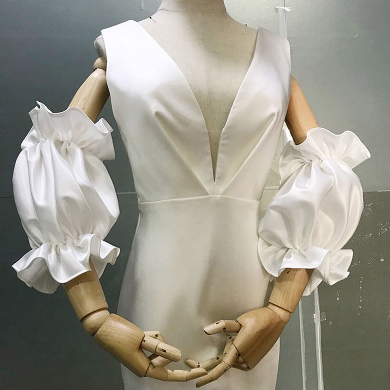 You will receive 1 pair of detachable puff sleeves. Solid color is easy to match with different styles of wedding dress.
