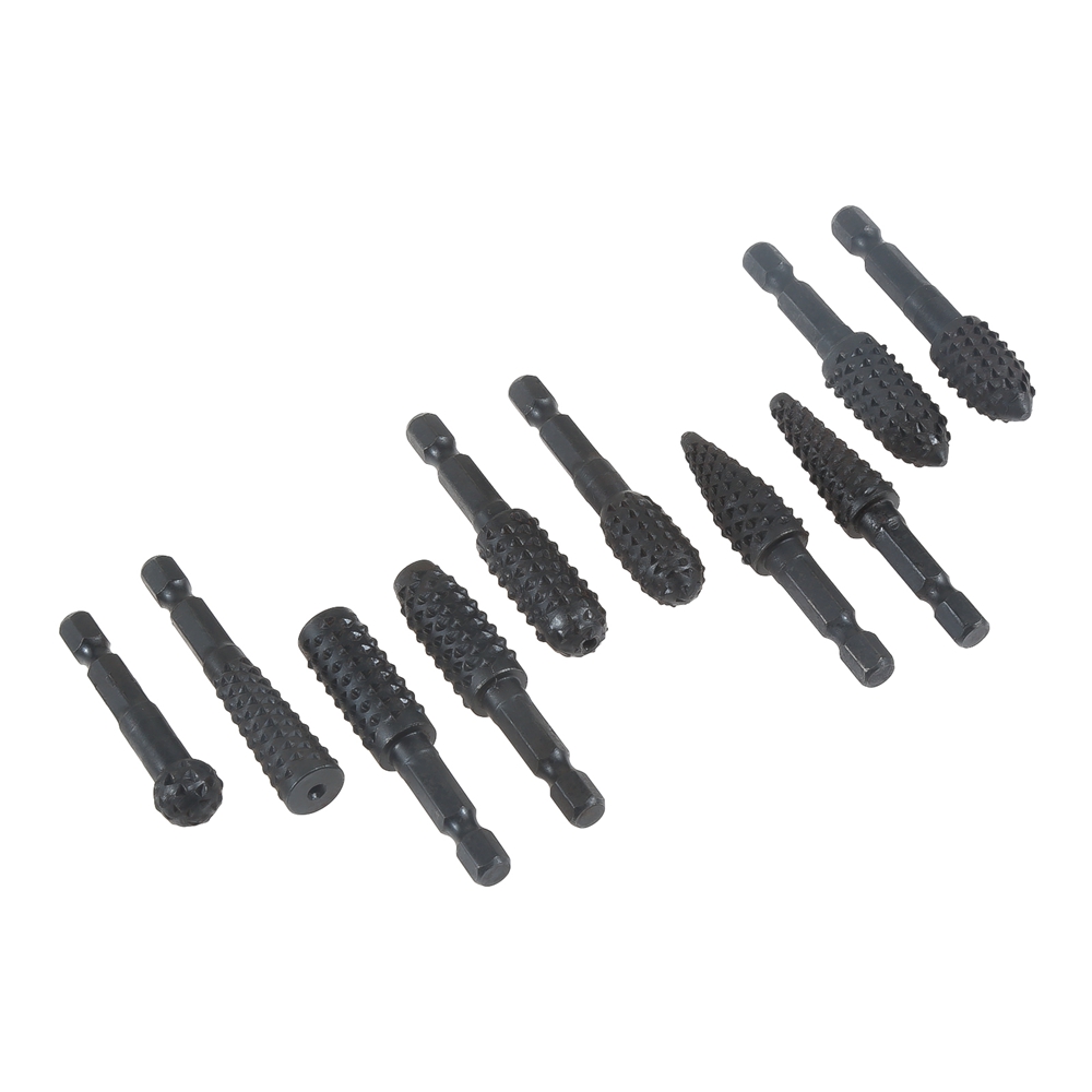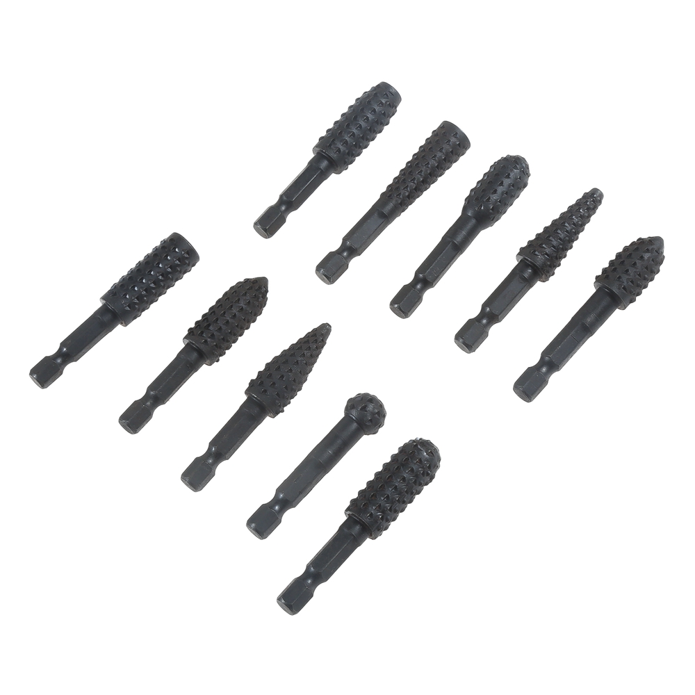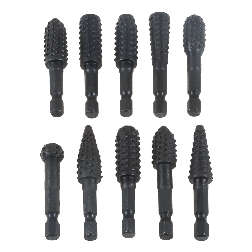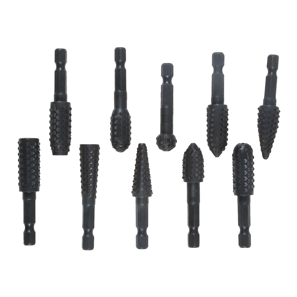 10x Rotary Bits Set Shank Woodworking Carving Rasp Drill Burr Grinding Engraving