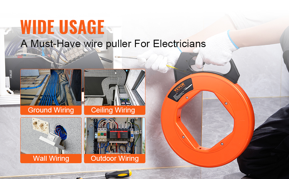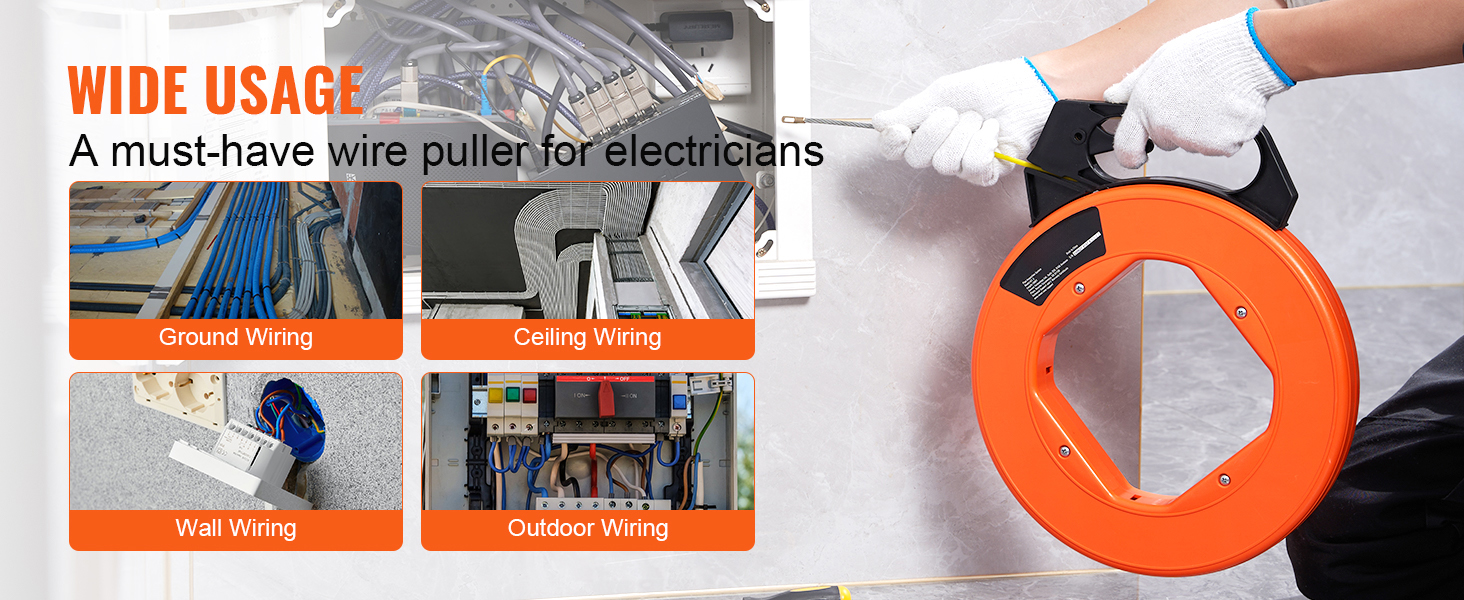 All-Rounder in Wiring: The #1 choice for indoor wire installations. From wall conduits to floor conduits, telecommunications to general electrical setups – this fish tape wire puller's got game! And hey, always remember your gloves during the operation. Security first, fun always!