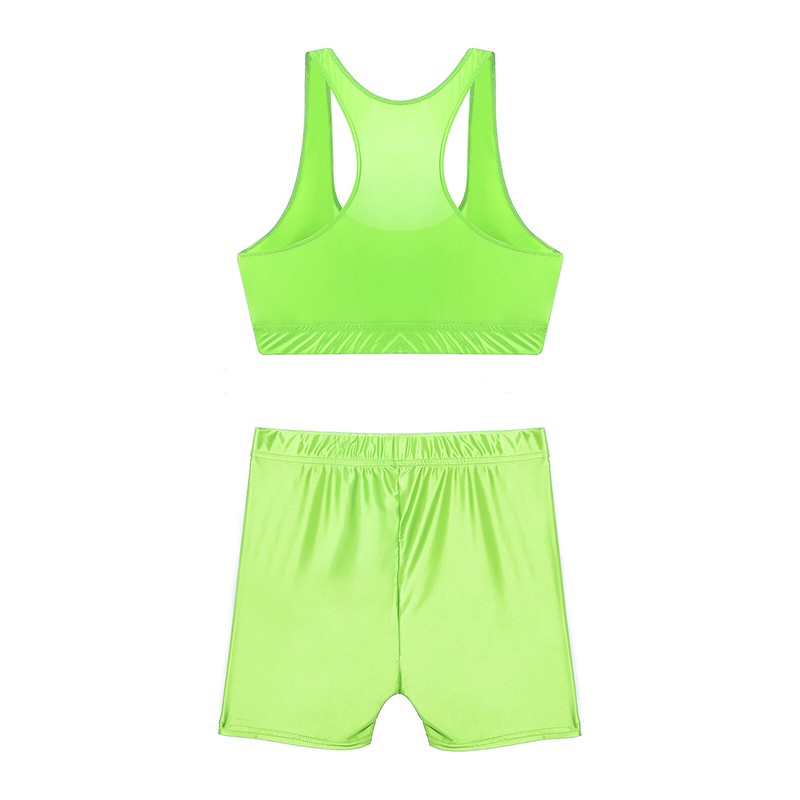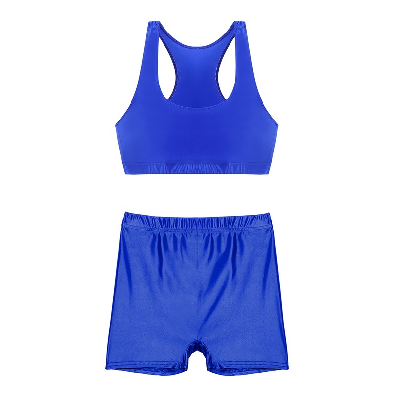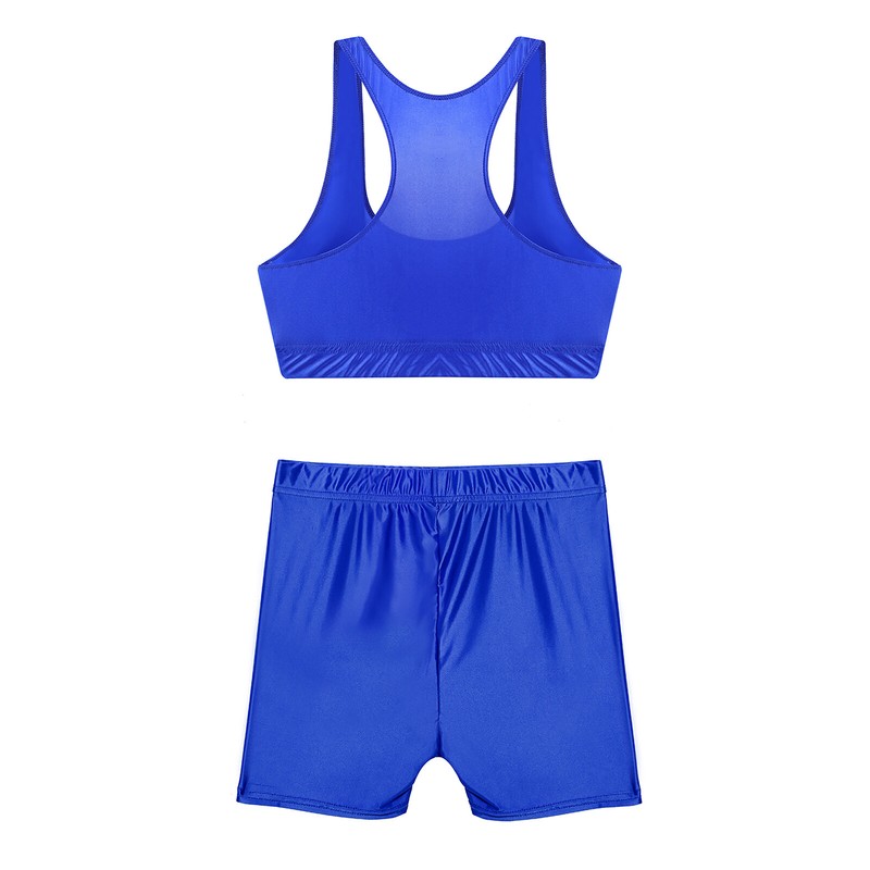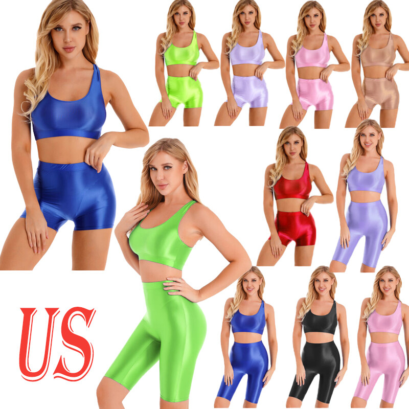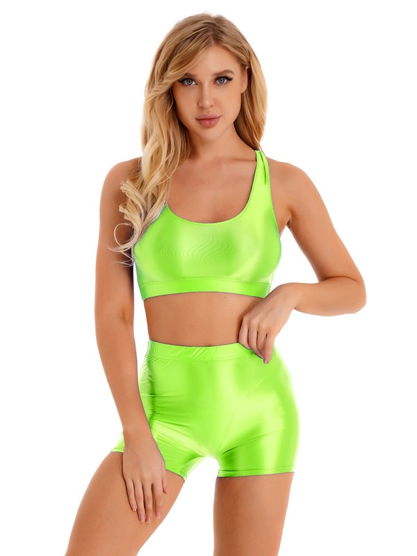 Womens Glossy Sleeveless U Neck Tank Top with Mid-Waisted Shorts.