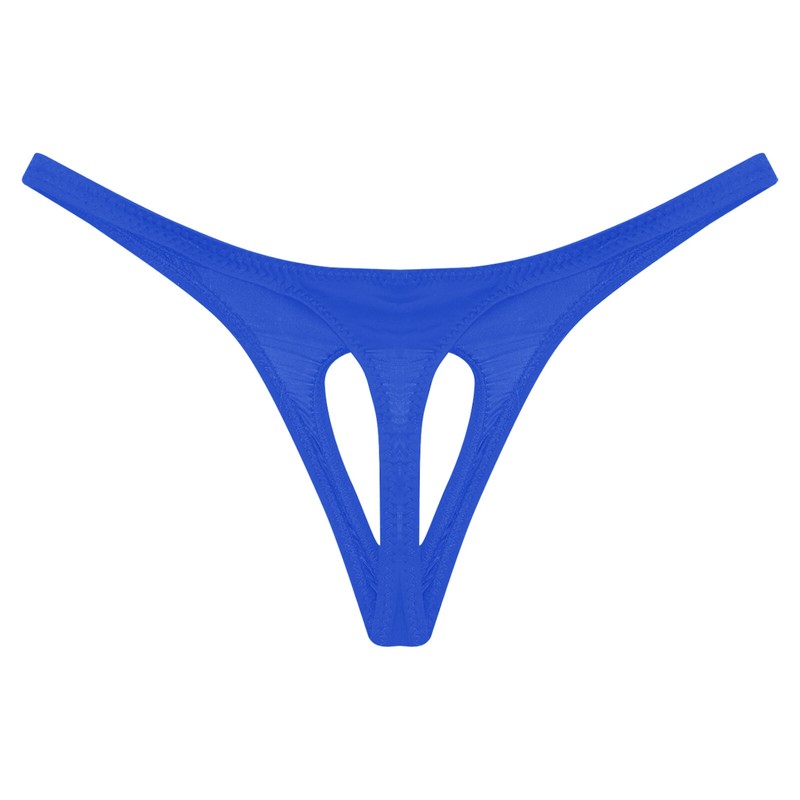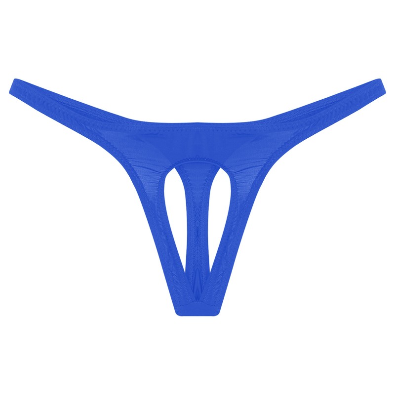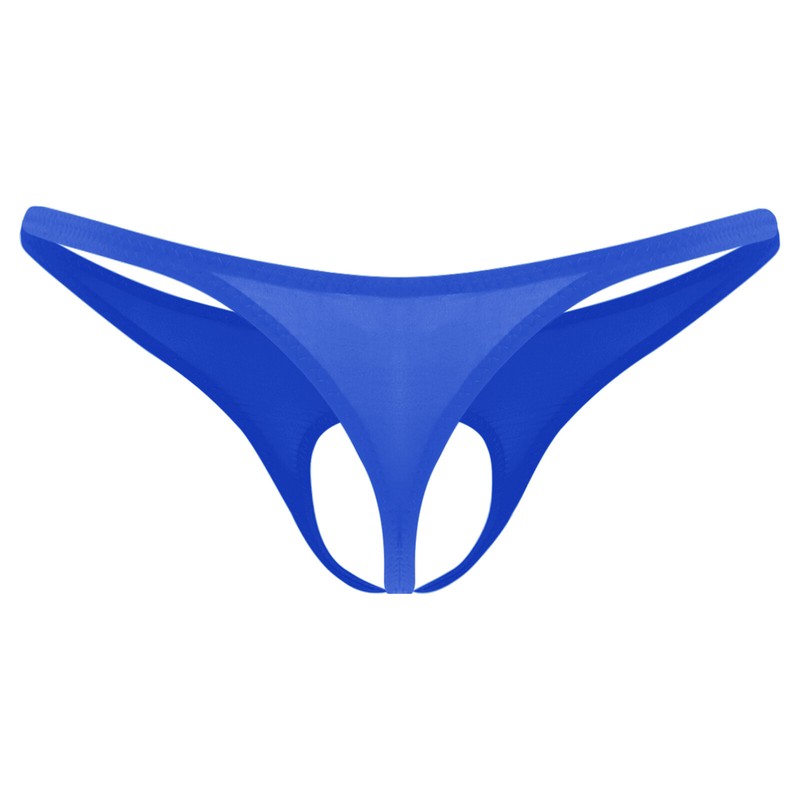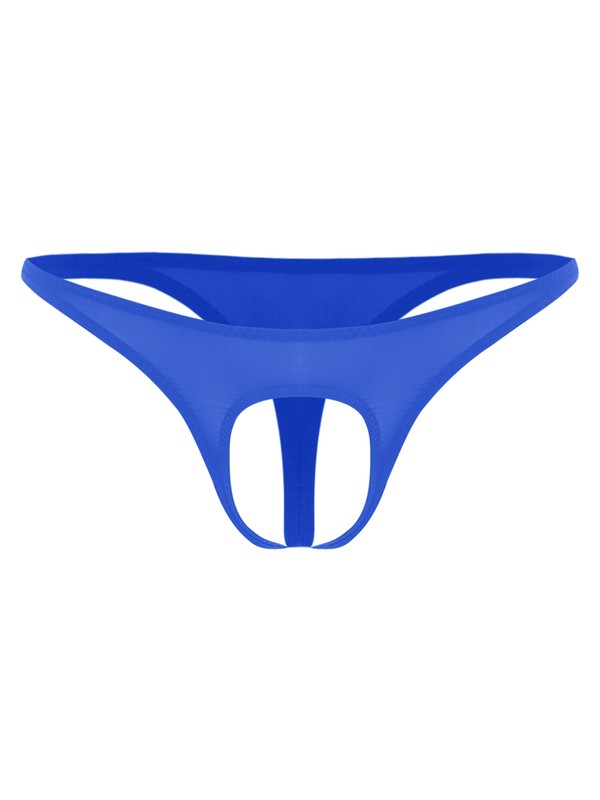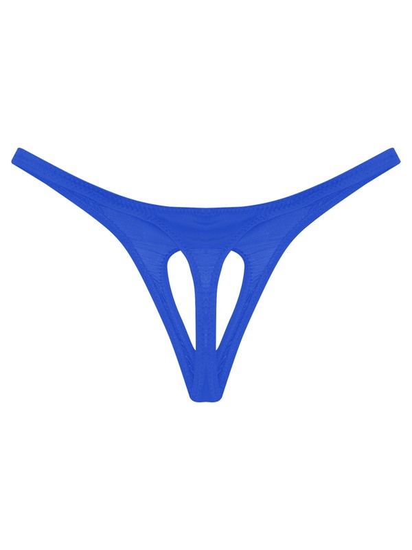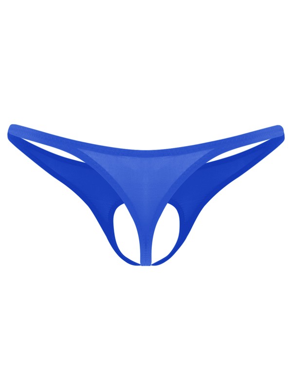 Designed with low waist, elastic wasitband, open front pouch and T-back.