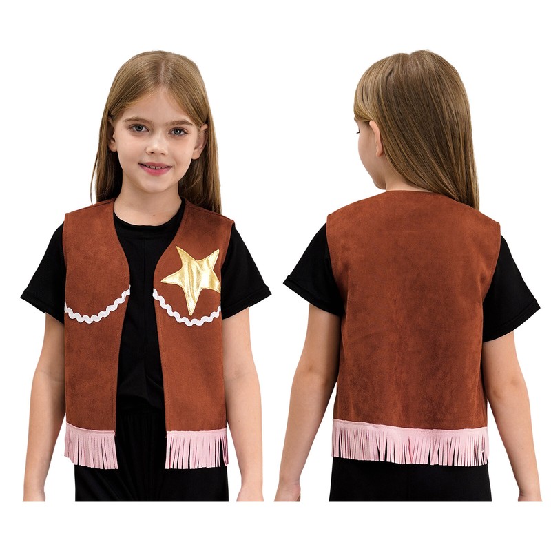 A cowboy cowgirl cosplay vest for girls, makes girls look like a cool and beautiful western cowgirl.