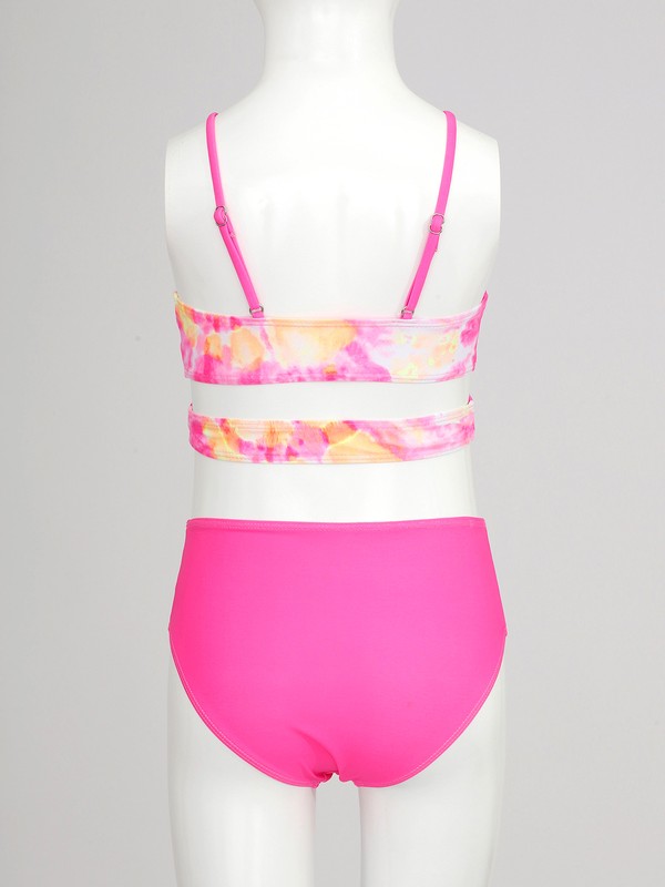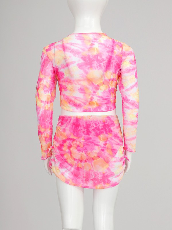 Includes a bikini top, a swim briefs, a cover up top and a beach skirt, colorful tie dye print make girl so beautiful.
