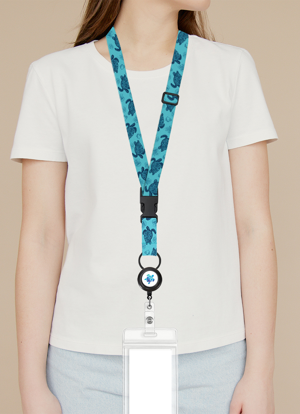 Greatly designed with one adjustable quick-release plastic buckle, one retractable badge reel and one water-assistant PVC ID card holder, this quality fashionable cruise landyard is convenient for you to carry your ID cards, cruise cards, creditcards, cash and so on.