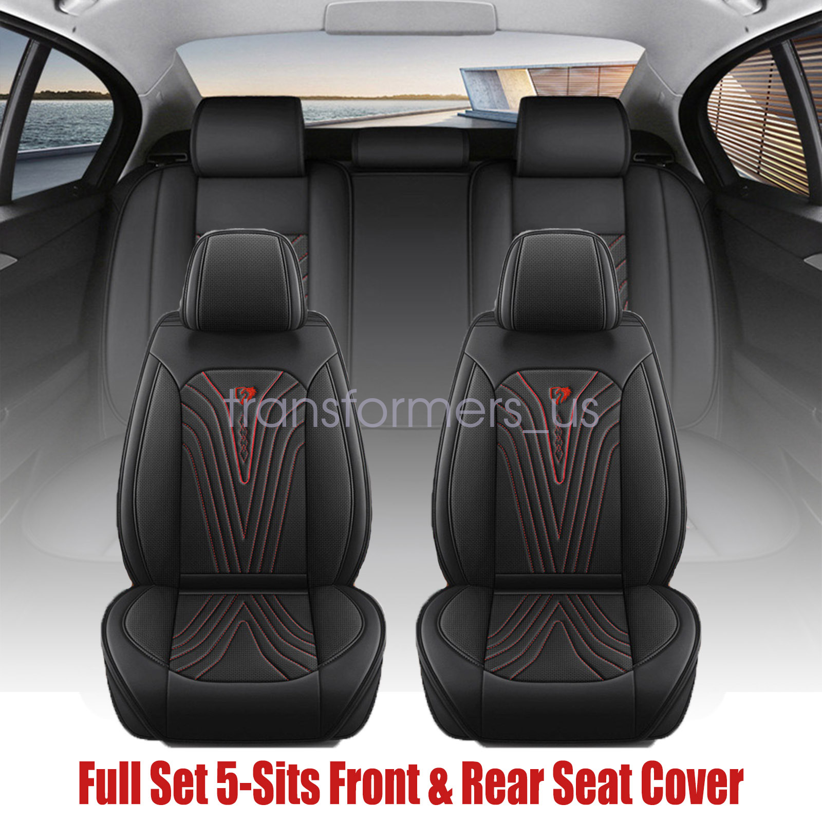 For Honda Quilted Perforated PU Leather 5 Seat Covers Full Set Front & Rear Protector Cushion Black Leather Red Stitch