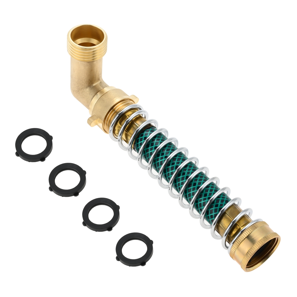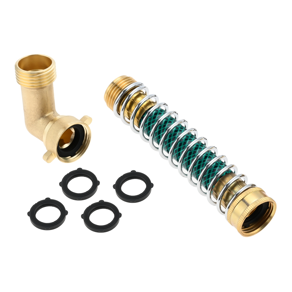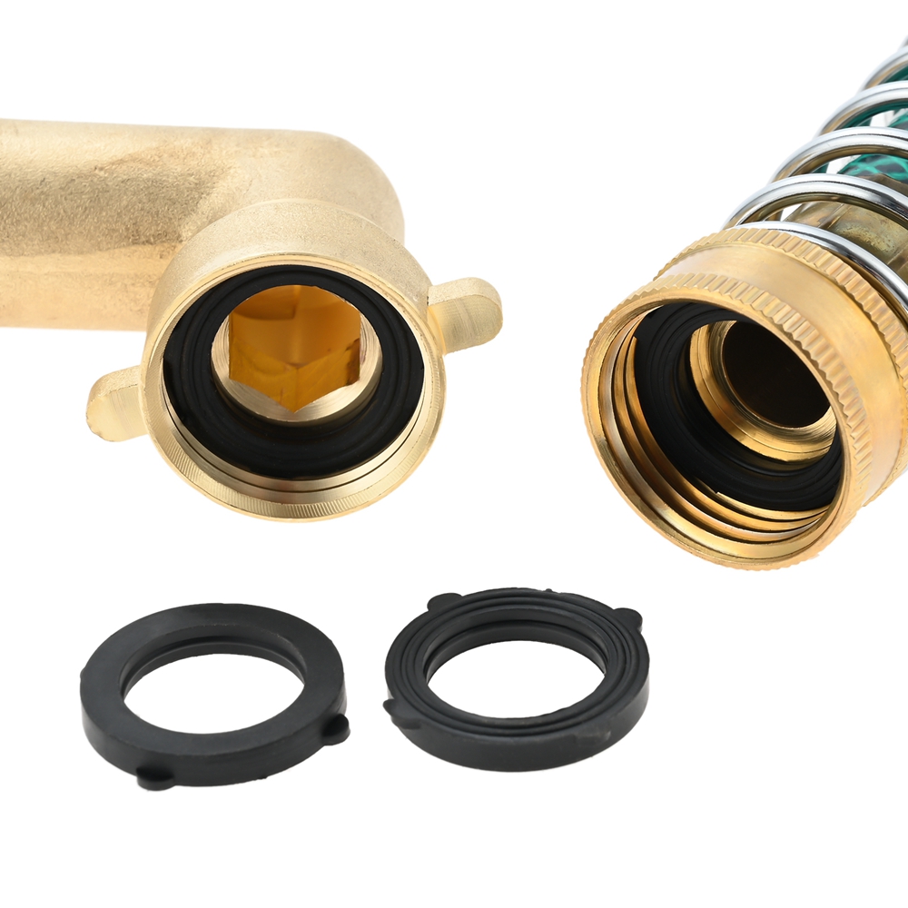 Garden Hose 90° Solid Brass Hose Elbow Connector w Hose Extension Adapter Washer