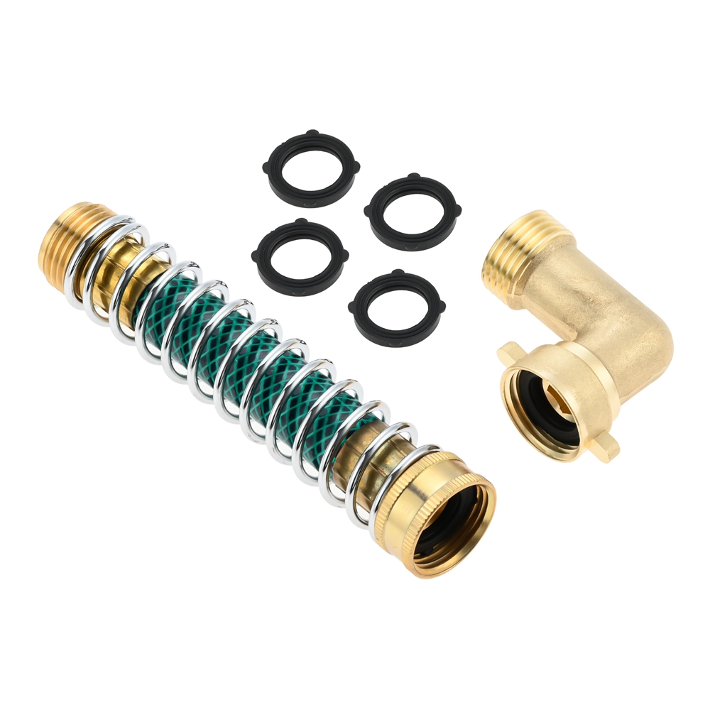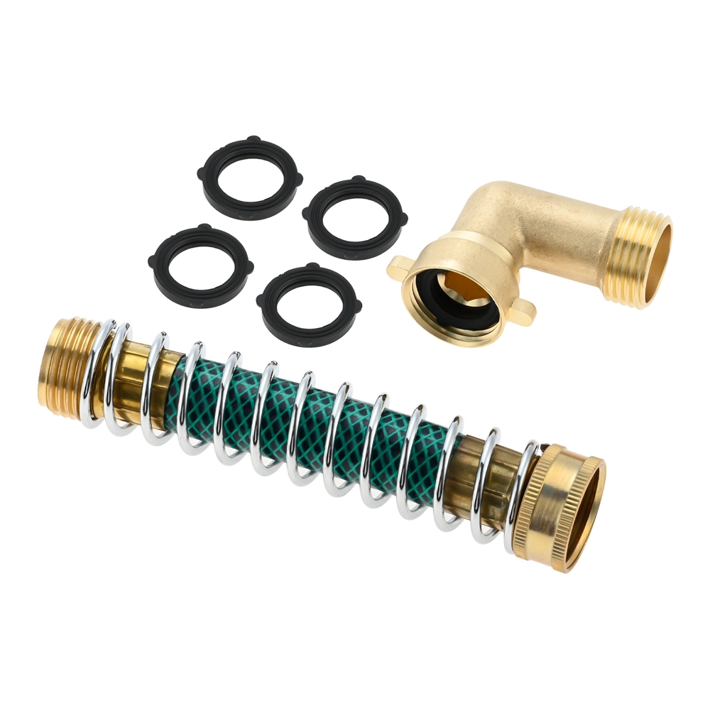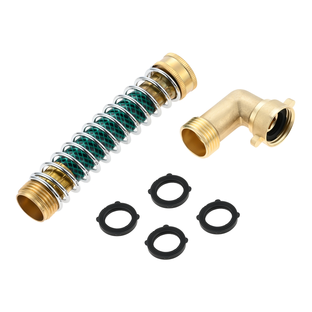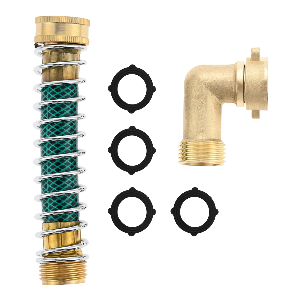 Garden Hose 90° Solid Brass Hose Elbow Connector w Hose Extension Adapter Washer