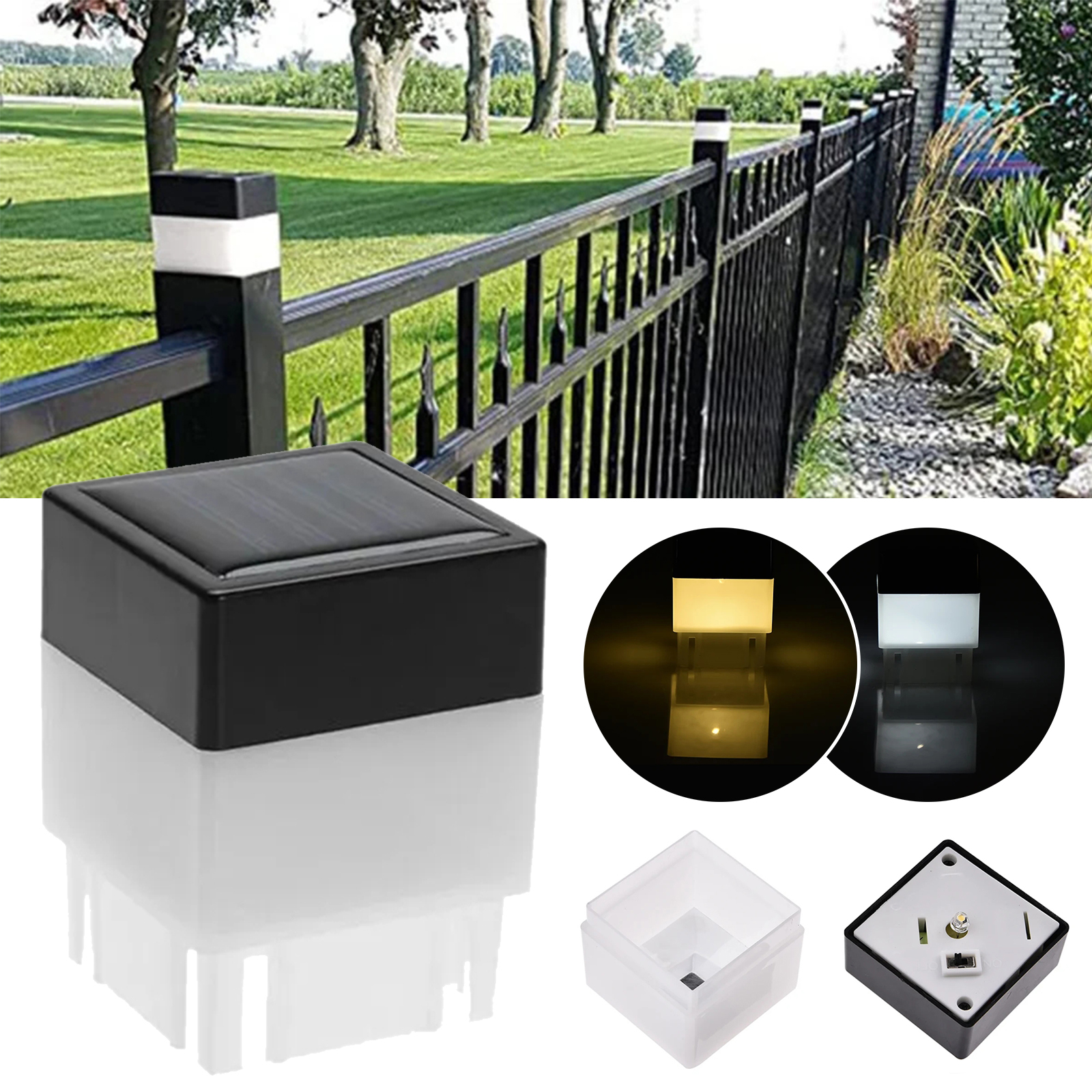 -AUTOMATIC ON/OFF: The solar post cap of the solar post light has a built-in photosensitive element that automatically turns on at dusk for decoration and illumination, and turns off at dawn to recharge during the day. When the solar energy is fully charged, it will remain stable all night long