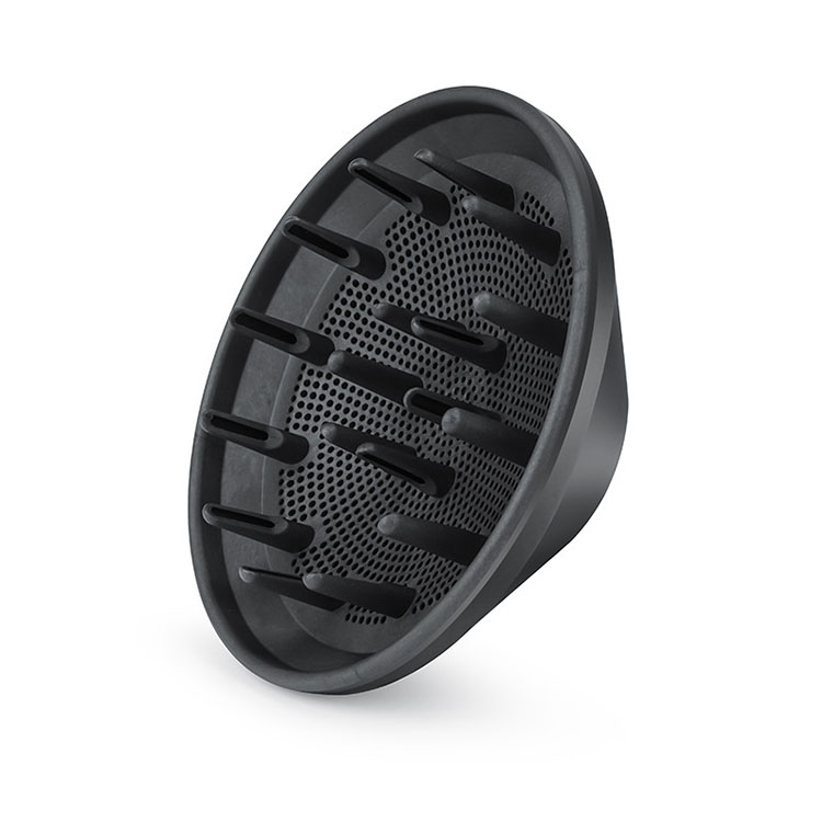 l The diffuser is in the shape of a deep bowl, the pores of the diffuser are evenly distributed and of the right size to ensure that the airflow is concentrated and even, gently touching each hair strand, blowing away frizz and caring for your natural hair