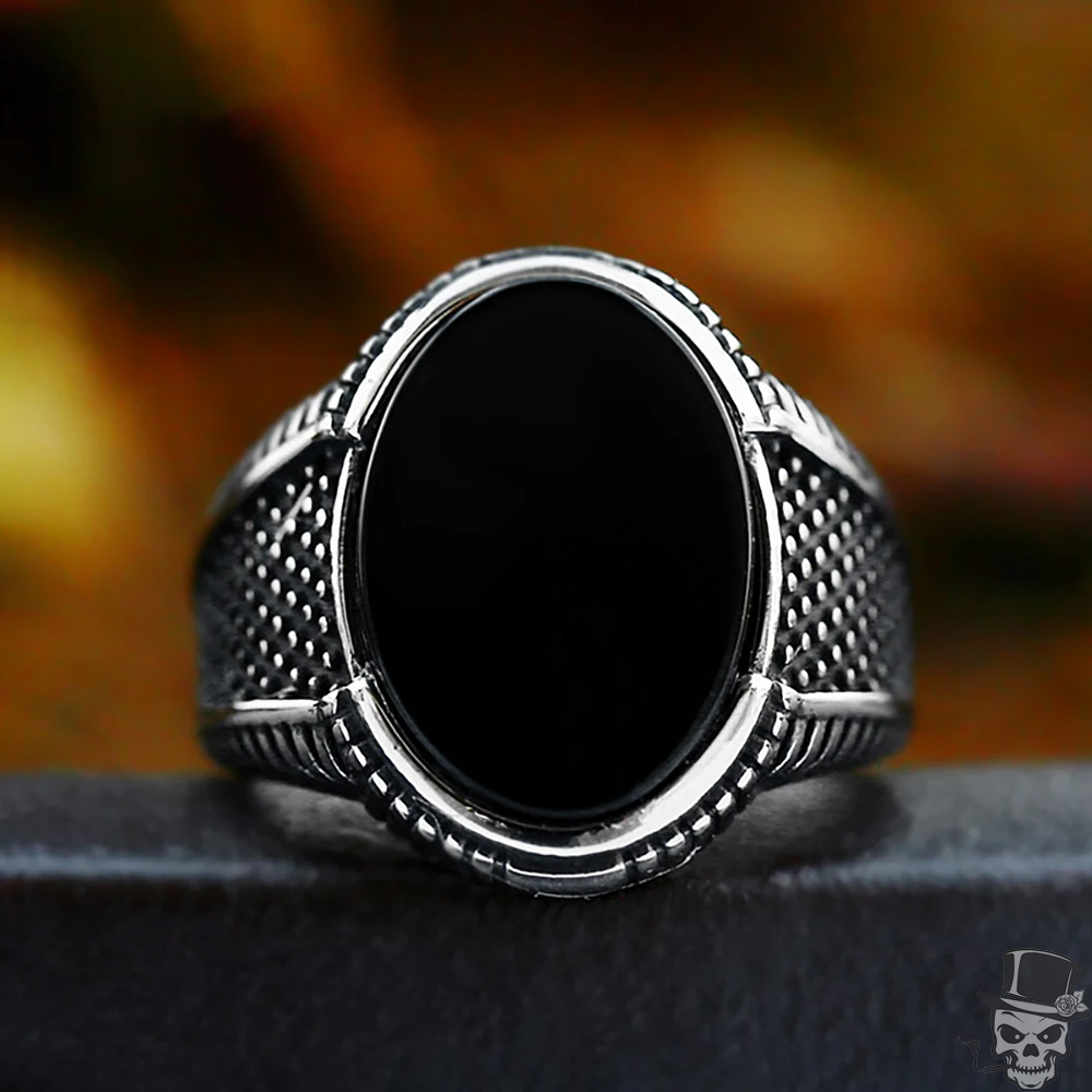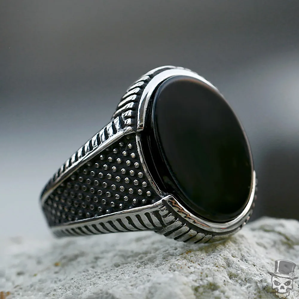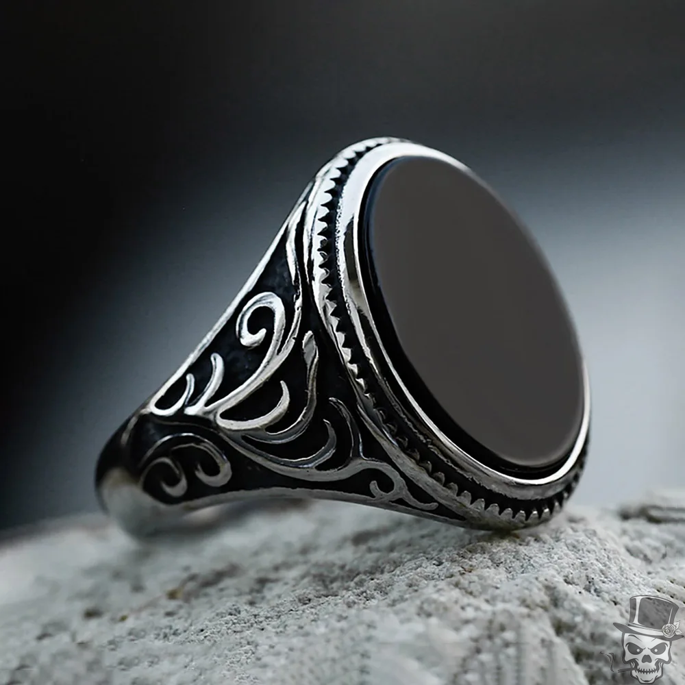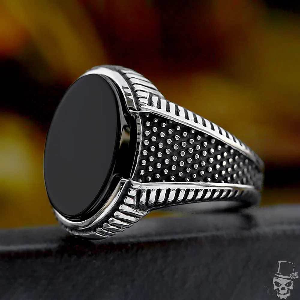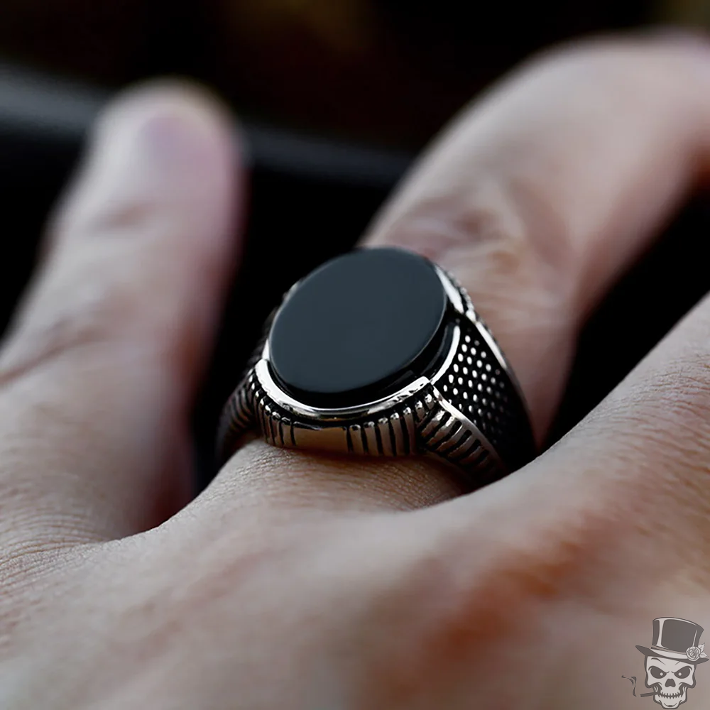 Sculpt Rings™ Men's Black Onyx Oval Signet Ring - Stainless Steel Statement Jewe