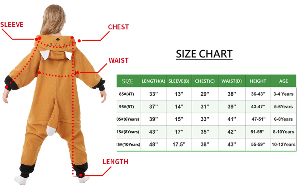 CANASOUR kids fox costumes are true to replicate all the features of fox.This lifelike fox costumes allow children to play the role of fox vividly