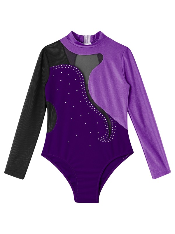 The long sleeve gymnastics leotard for girls ensure total movement and flexibility when leaping, dancing or tumbling.