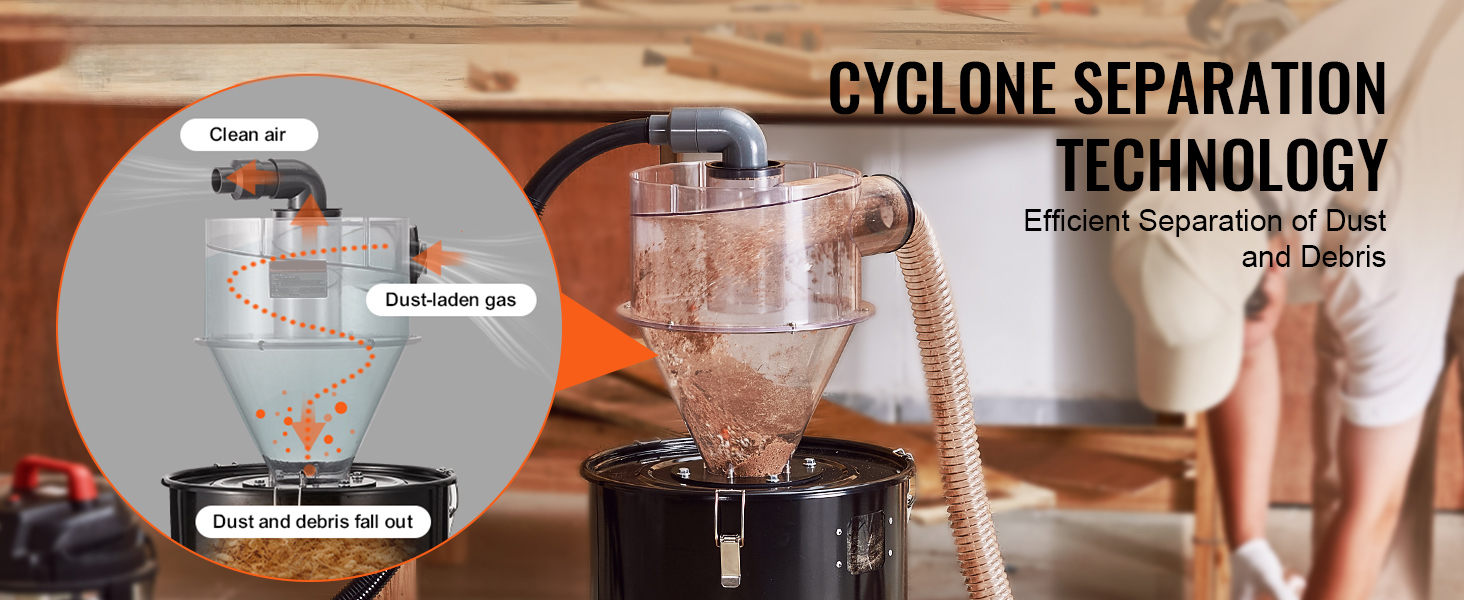 Delivering exceptional separation, this separator is ideal for various cleaning tasks, whether in workshops, construction sites, or woodworking areas.