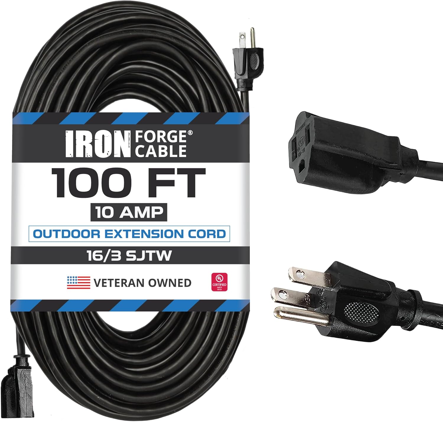 3-wire, pure copper extension cord, 16 Gauge/16 AWG, 3 prong grounded plug. 10 amp, 125V, 1250 watt. Temperature Range: -40°F to +140°F