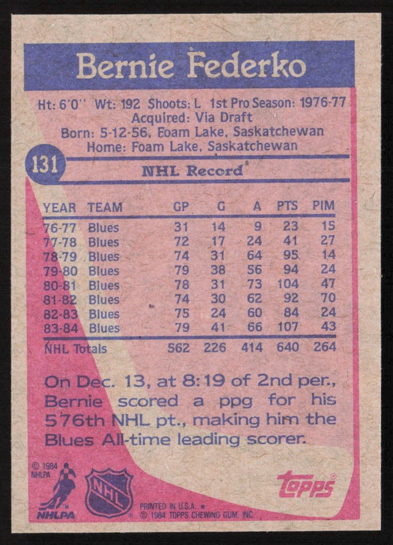 | 1984-85 Topps Berine Federko Buffalo Sabres #131 | ||||||||||||||||