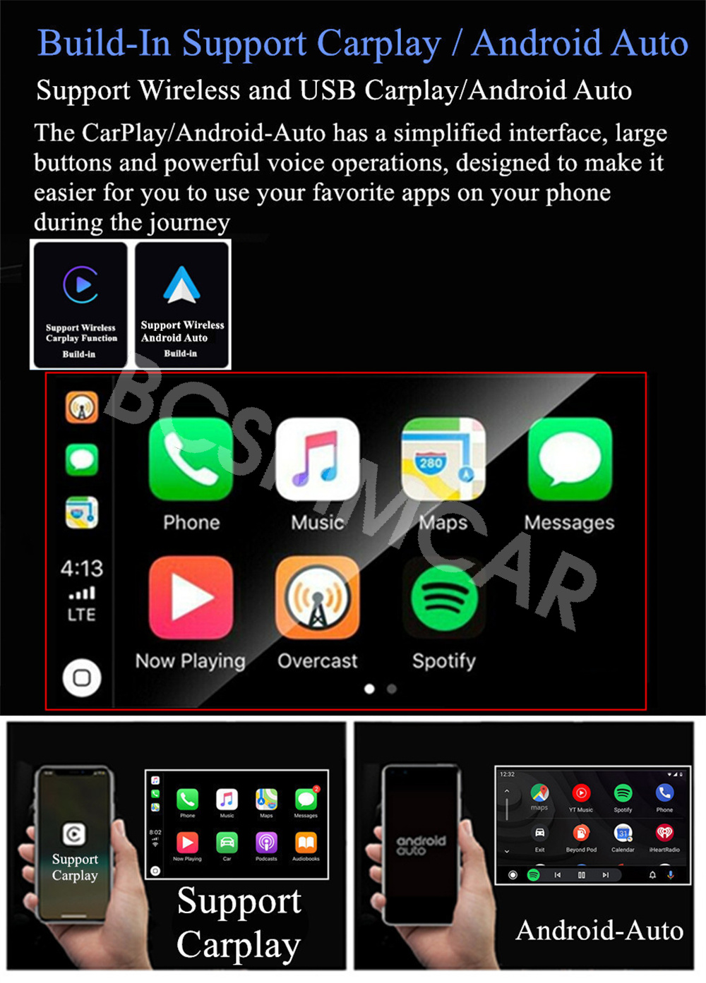 -Build-In Support WIFI Wireless & USB Wired Carplay And Android Auto.