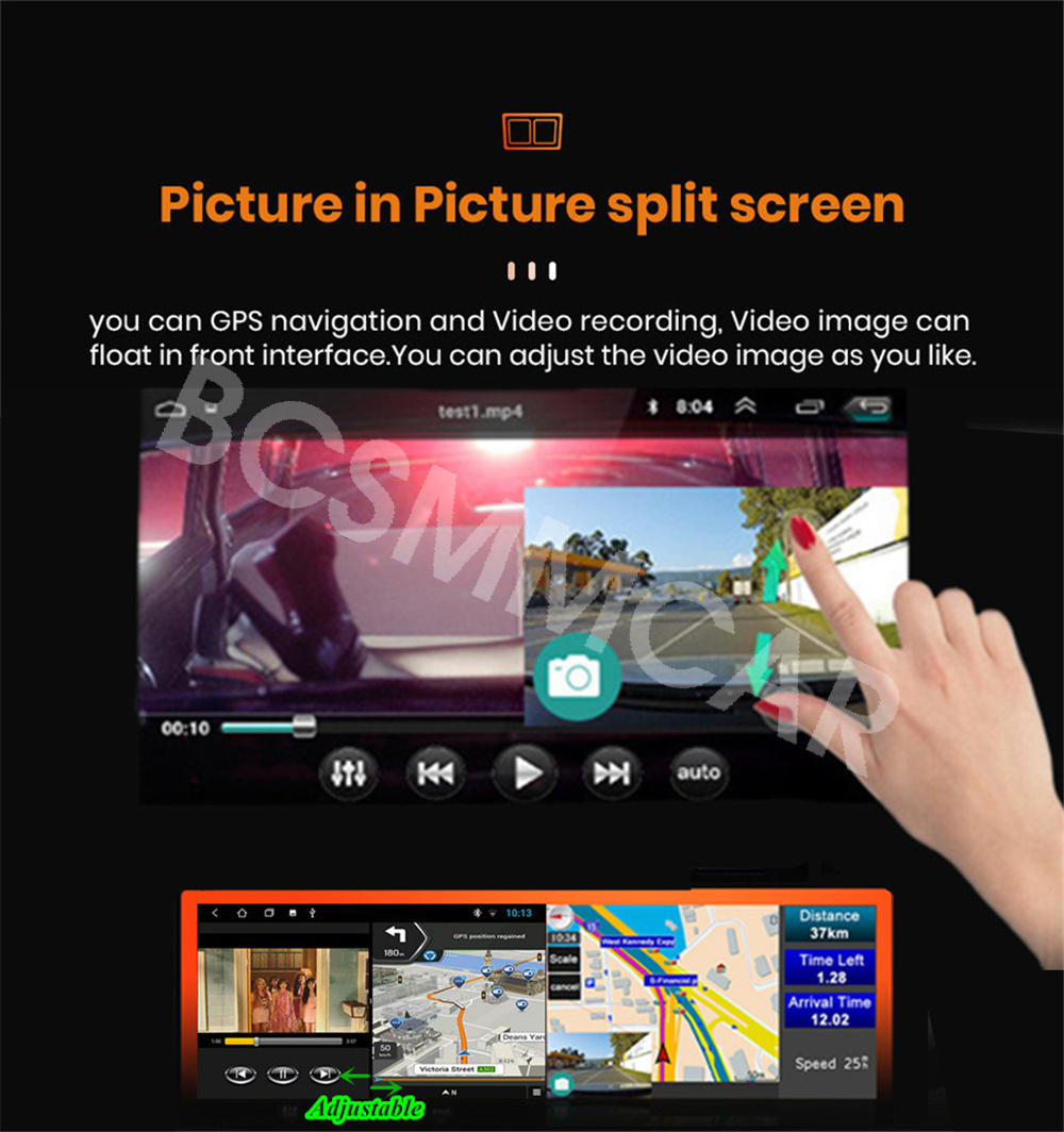 Split screen feature enables you to use two applications at the same time. For example running Navigation with Music Player or Radio with Navigation at the same time. Optimum convenience for both the driver and passengers.