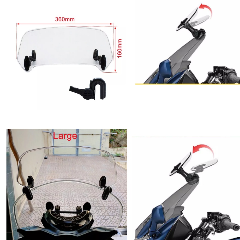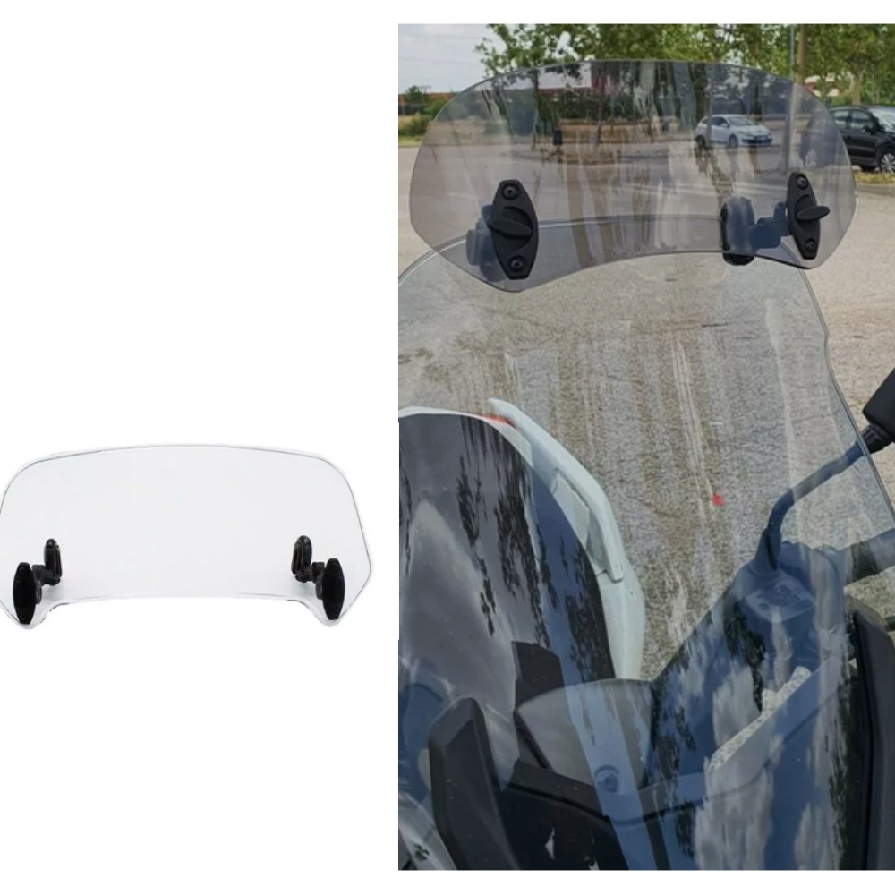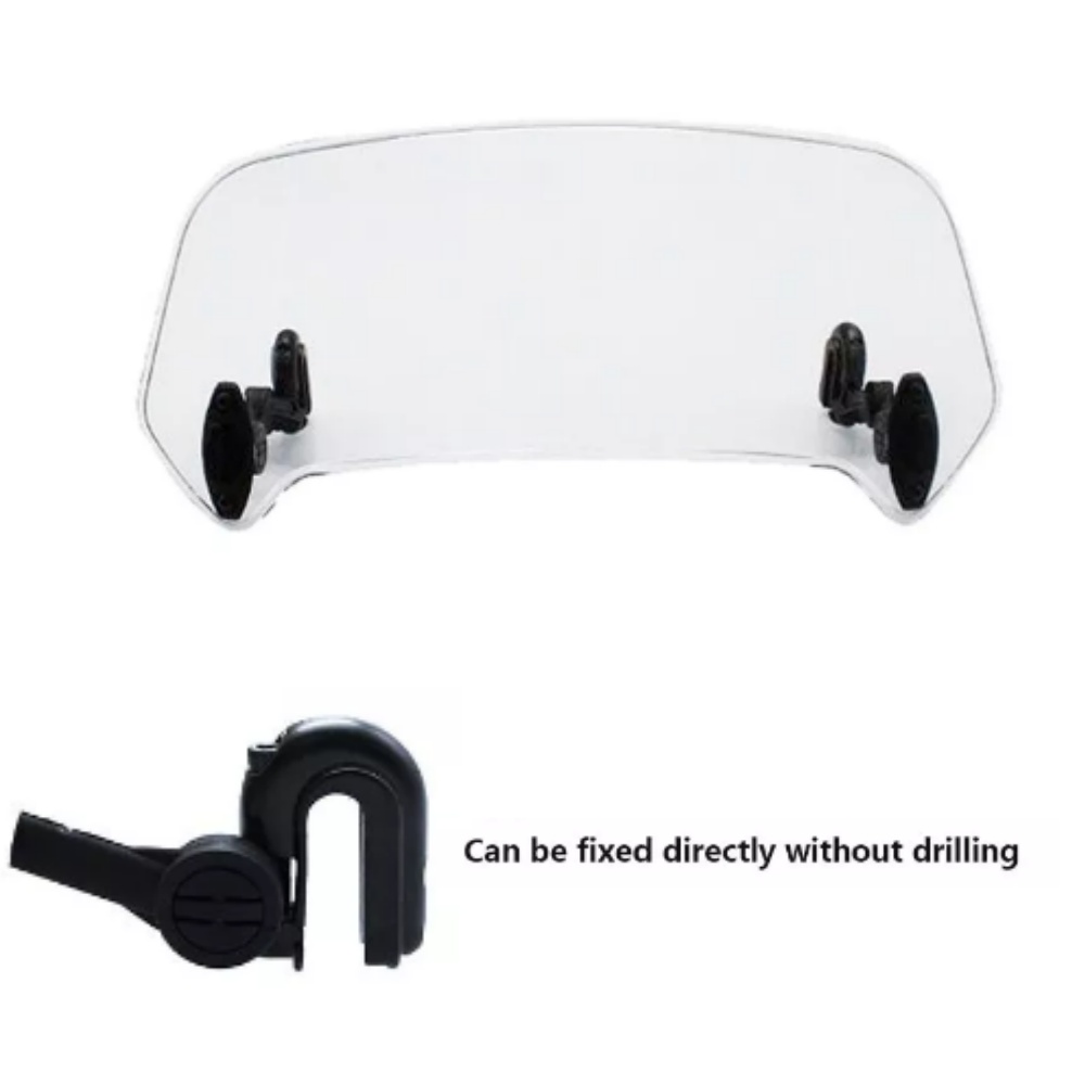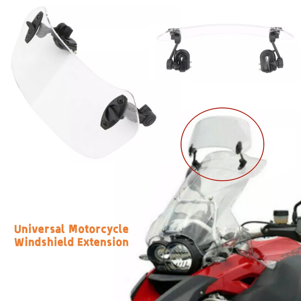 Adjustable windshield, fixed on the above of original windshield, heightening for better head protection rider safety.