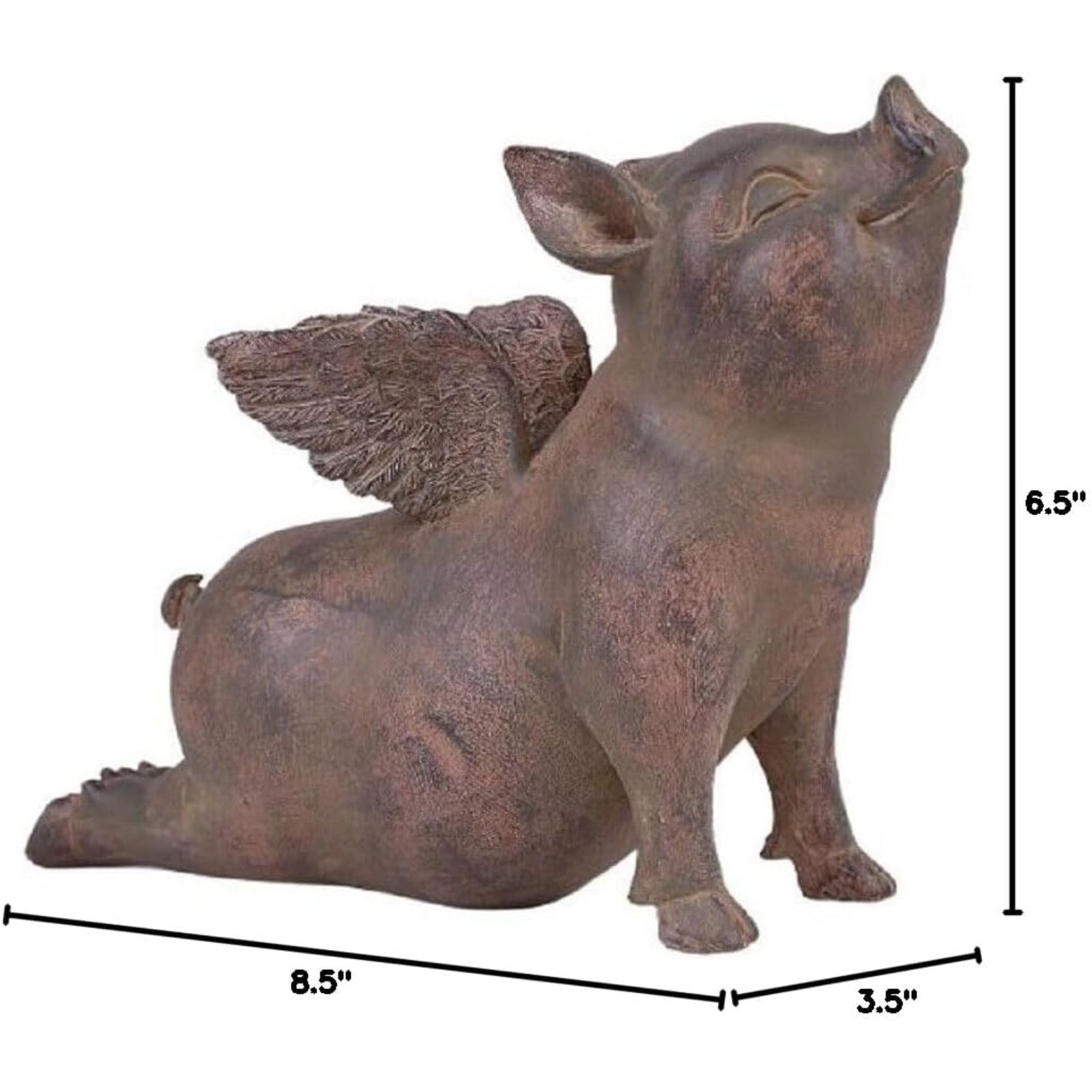 Pacific Trading Flying Pig Figurine 8.5 Inch Rustic