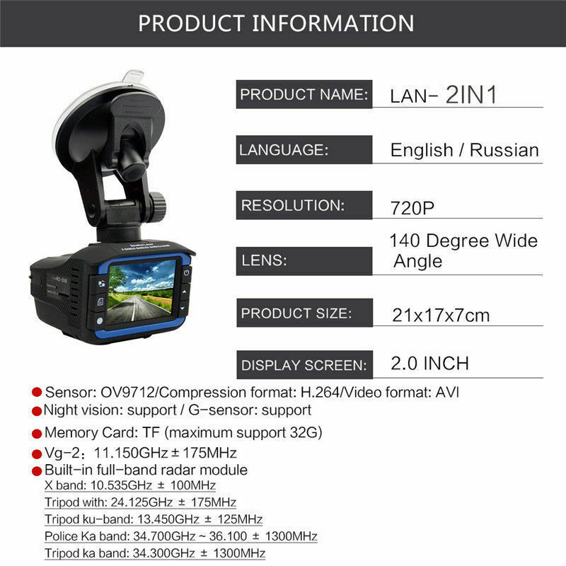 - 2 in 1 multifunctional car dvr with full frequency radar detector.