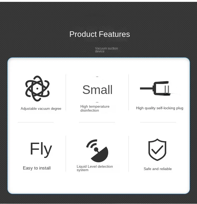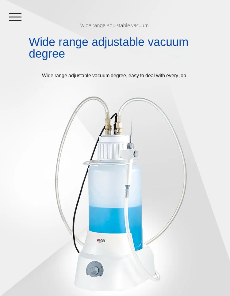 • Vacuum power can be set to different levels to achieve 1mL/S to 15mL/ S aspiration speed