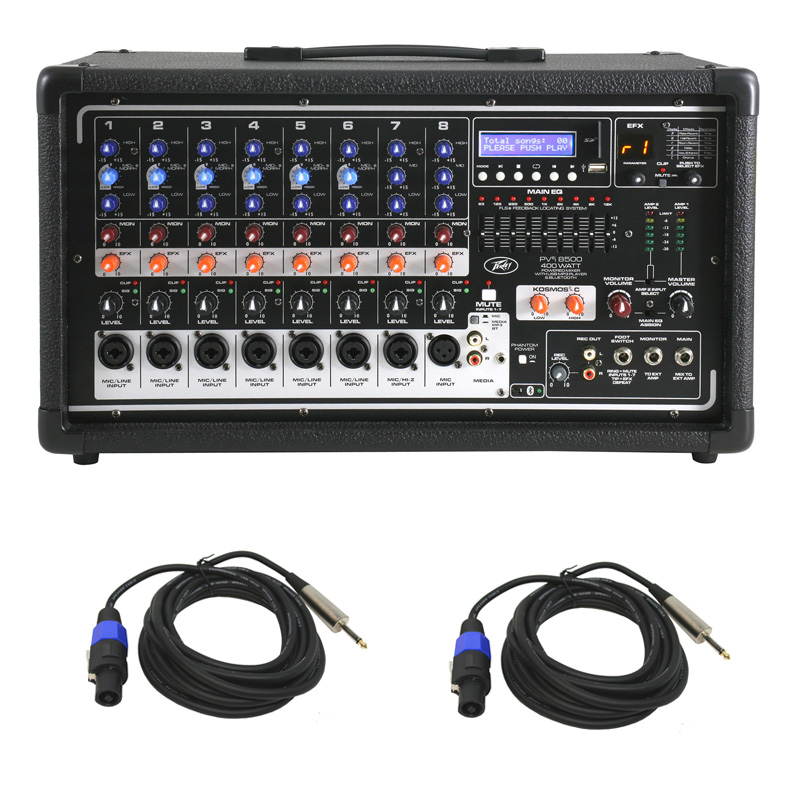 Peavey Pvi 8500 Pro 8Ch Powered 400W Mixer (2) Speakon To 1/4" Speaker Cables