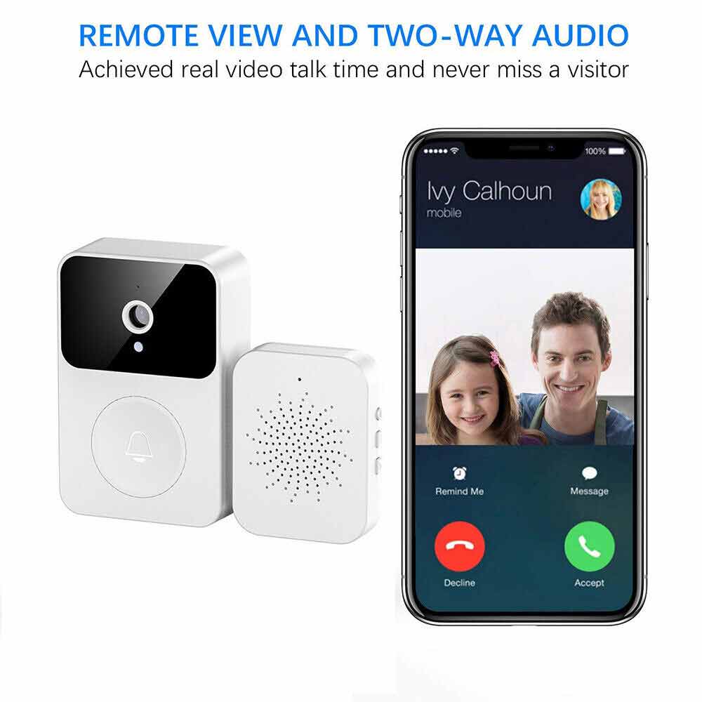 Características:【Notificación instantánea y audio bidireccional】: cuando alguien presiona el timbre, el teléfono celular conectado a él recibirá una notificación instantánea y podrá hablar con el vistor. Puedes utilizar la aplicación móvil para hablar con la persona que toca el timbre en tiempo real. El timbre de video se conecta con WiFi de 2,4 GHz (no admite 5 GHz).【Múltiples usuarios y almacenamiento gratuito en la nube】: El timbre de video inteligente admite varios miembros de la familia en la aplicación en línea. Simplemente puedes compartir el timbre con tu familia en la aplicación. Admite compartir hasta 10 miembros al mismo tiempo. El timbre wifi inalámbrico también admite almacenamiento en la nube cifrado y se proporciona almacenamiento rodante gratuito de 3 días. 【Timbre interior inalámbrico】: El timbre inteligente viene con un timbre interior inalámbrico, 38 melodías incorporadas con volumen ajustable.【Visión nocturna y cambio de voz】: Con luces de visión nocturna 850N incorporadas, también puede ver muy claramente por la noche. El timbre inteligente también admite el cambio de voz, las voces de las mujeres en las voces de los hombres. 【Batería recargable y fácil instalación】: esta cámara de timbre wifi inalámbrica inteligente funciona con una batería recargable incorporada de 800 mAh, que puede funcionar durante aproximadamente 3 meses después de una carga completa. La instalación es bastante fácil, simplemente consulte el manual del usuario y tómese unos 5 minutos para configurar con los tornillos proporcionados y la cinta de doble cara.Especificaciones:Material: material ABS, PCB A, batería de polímero, altavoz, cámara, hardware de metal.Capacidad de la batería: 800 mFuente de alimentación: 5V = 2Tiempo de carga: 1,5 horasTiempo de espera: 2 años o másLos discos se almacenan durante 3 días (hoy, ayer, el día anterior) Resolución de la cámara 480 * 640 Tamaño del timbre del timbre del usuario: 141 mm Tamaño del timbre del timbre del usuario: 141 mm * 12