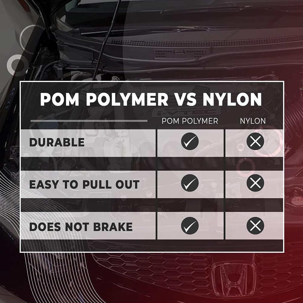 Die Automobil-Montage-Clip-Nieten sind aus hochwertigem Kunststoff mit hoher Elastizität und Gedächtnis, die ihr ursprüngliches schönes Aussehen sofort nach der Extrusion und Verformung wiederherstellen können. Diese Clips sind sehr stark und haben eine lange Lebensdauer.