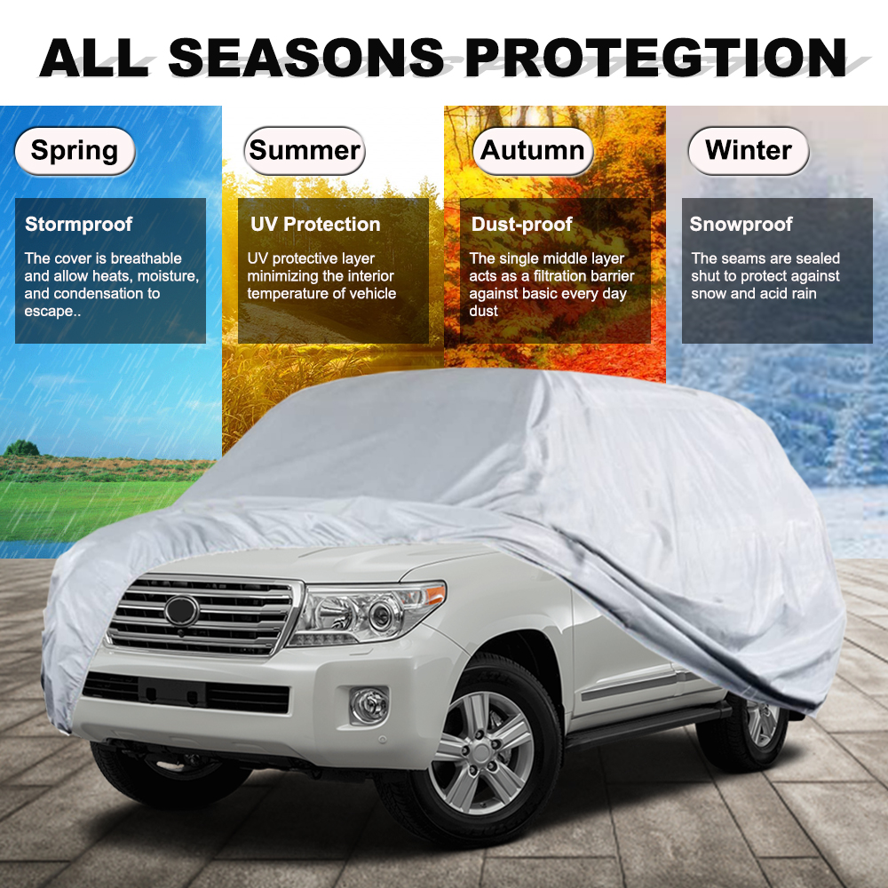 Beschreibung: Diese Auto-Halb-/Vollabdeckung ist ideal, um Ihre Fenster, Autopaneele und Räder vor einem frostigen Morgen oder einem sonnigen Tag zu schützen. Kein Kratzen mehr an der Windschutzscheibe an einem kalten, frostigen Morgen oder Öffnen der Fenster an einem glühend heißen Tag. Die elastischen Bänder mit 4 Haken lassen sich schnell und einfach anbringen und entfernen. Jeder Clip oder jedes Band um Leichtmetallräder herum Es ist aus einem starken, wasserdichten, atmungsaktiven Material mit einem weichen Futter hergestellt, um Ihren Lack vor Kratzern oder Vogelkot zu schützen. Um es fest an Ort und Stelle zu halten, hat diese Car Top Half Cover 4 elastische Bänder mit 4 Kunststoffhaken, die auf Ihre Räder oder Karosserie Haken wird. Alle Nähte, Säume und Bänder sind für zusätzliche Festigkeit genäht. Sie werden in einem stabilen Beutel geliefert, in den Sie sie zurücklegen können, wenn Sie sie vom Auto abnehmen. Eigenschaften: Das ganze Jahr über geeignet. Der beste Schutz vor Feuchtigkeit, Schnee und Schmutz. Verhindert die Bildung von Reif auf der vorderen Windschutzscheibe. Einfache und schnelle Montage. Leicht zu organisieren Spezifikationen: Material: 100% Polyester Farbe: Schwarz, Grau (Silbergrau) Fitment Fahrzeug: Mercedes Benz Smart, Limousine, SUV Abmessungen: ca. (Länge x Breite x Höhe) - Für Smart Halb Abdeckung: 260 x 150 x 50 cm - Für Smart Voll Abdeckung: 270 x 150 x 120 cm - Für Limousine Voll Abdeckung S: 415 x 170 x 150 cm - Für Limousine Voll Abdeckung M: 450 x 175 x 150 cm - Für Limousine Voll Abdeckung L: 470 x 180 x 150 cm - Für Limousine Voll Abdeckung XL: 490 x 180 x 150 cm - Für Limousine Voll Abdeckung XXL: 530 x 200 x 150 cm - Für SUV-Voll Abdeckung L: 470 x 180 x 185 cm - Für SUV-Voll Abdeckung XL: 520 x 200 x 180 cm Paket enthalten: 1 x Autoabdeckung - Mit Aufbewahrungstasche