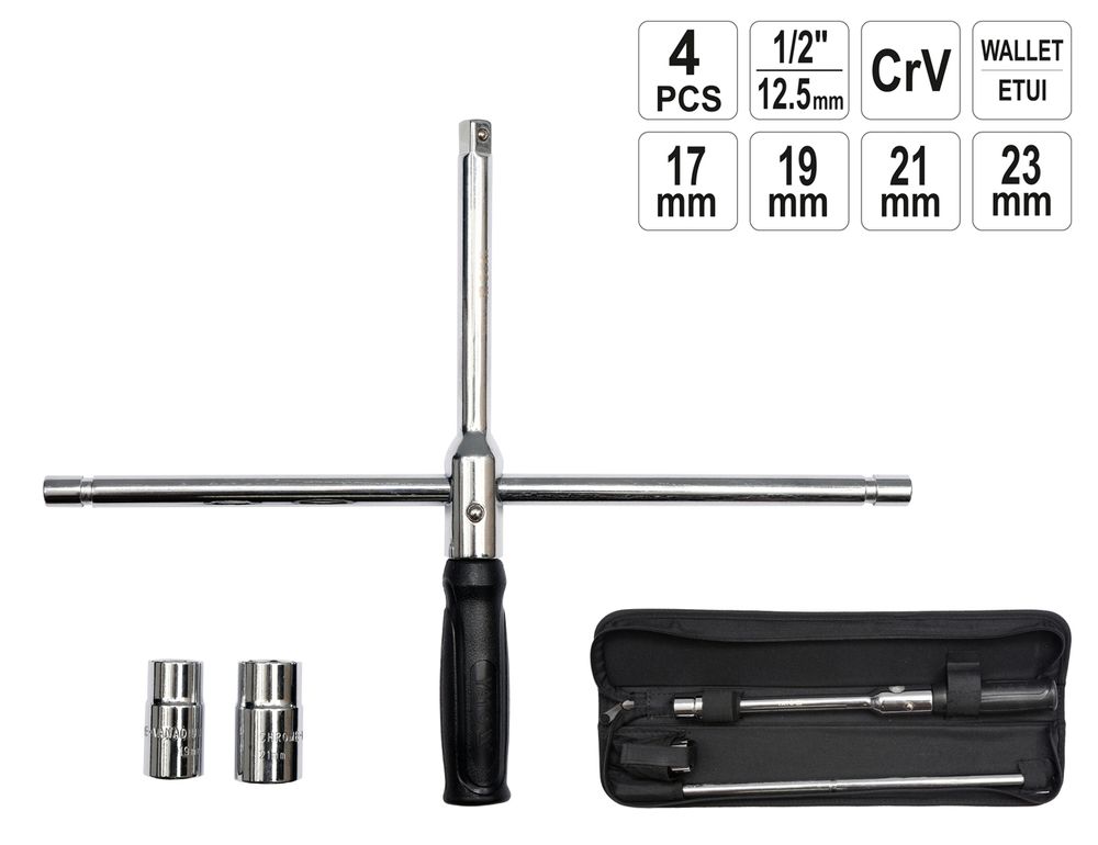 - Verchromte Buchsen in den Größen: 17 mm, 19 mm, 21 mm, 23 mm
